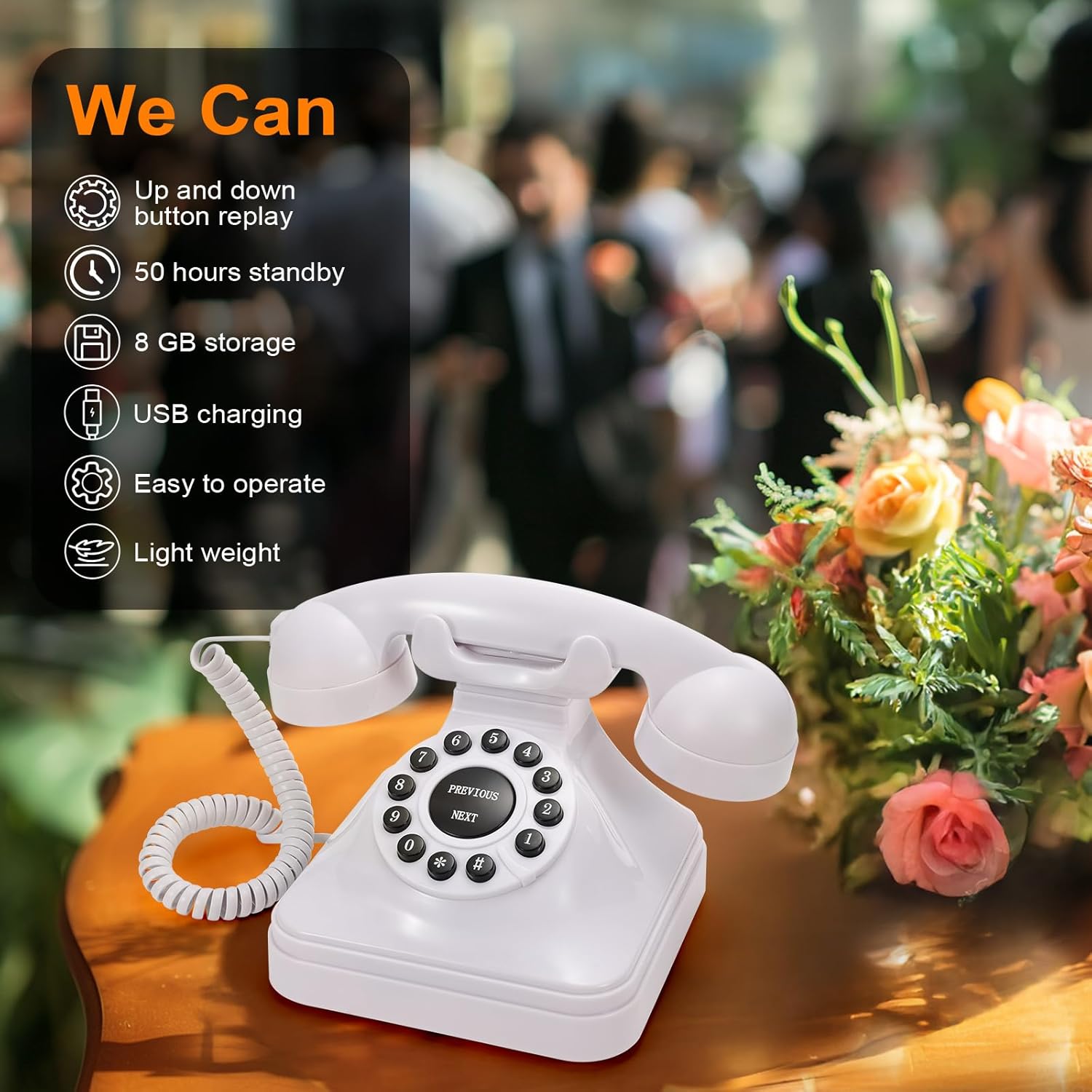 Guest Book Audio Wedding Phone,Record Voice Messages,Retro Guest Book for Wedding or Birthday Party Message Voicemail,Save The Blessings of Your Relatives and Friends(White)