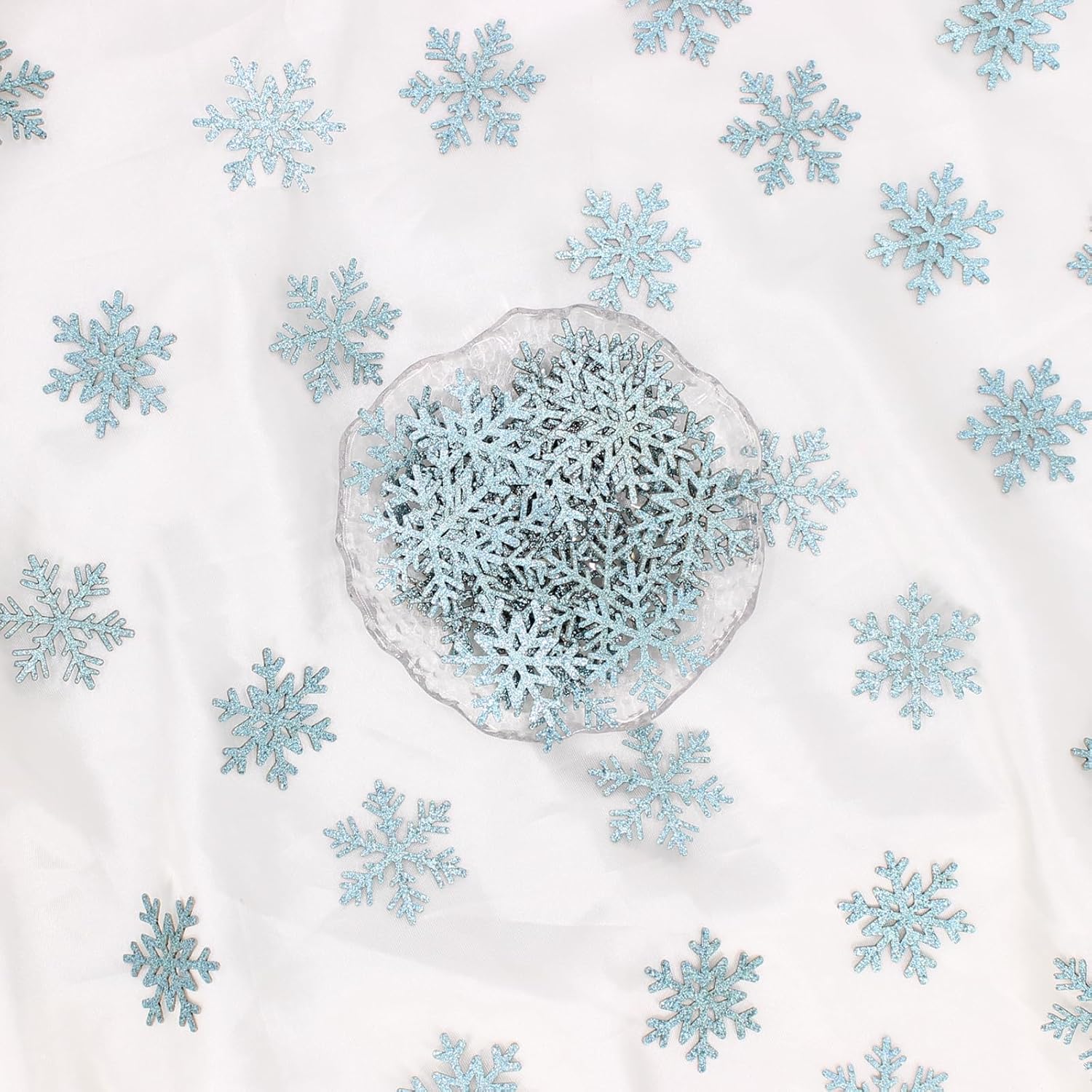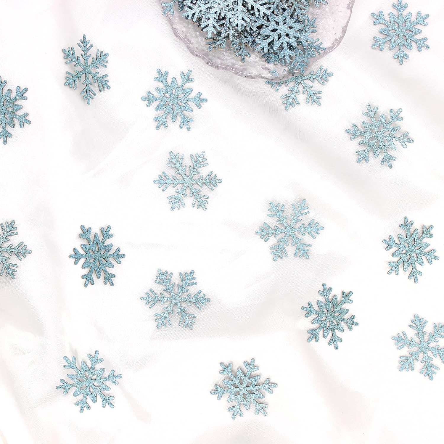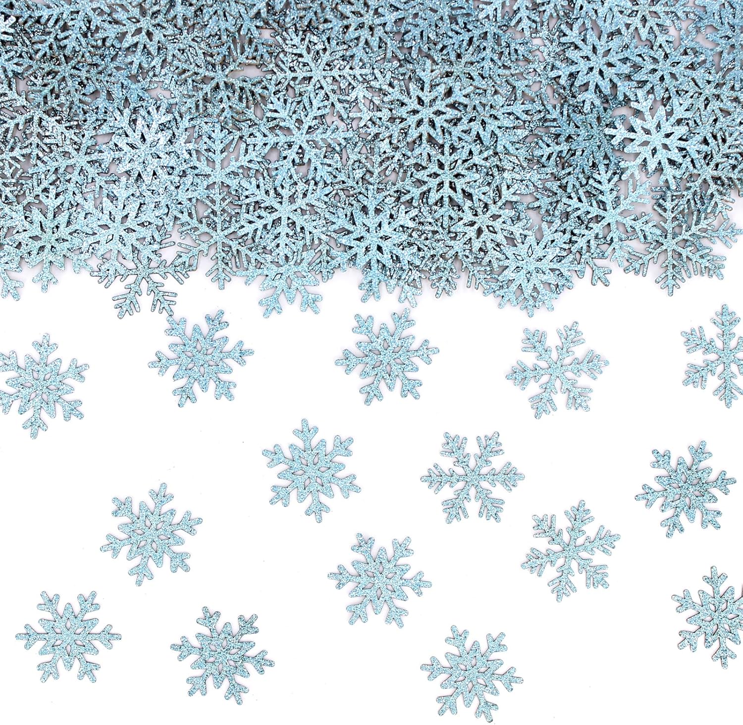 200PC Blue Glitter Snowflake Confetti Winter Wonderland Table Decorations Snowflakes Table Scatter for Christmas Birthday Baby Shower Party Decor Supplies