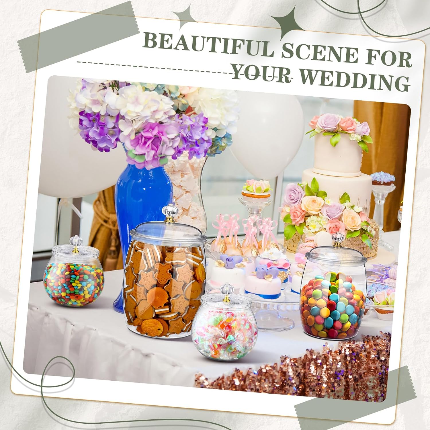 • Package Content: this pack includes 4 clear jars with lids; Each candy storage jar comes with a lid, making it ideal for those who frequently bake or entertain; The pack efficiently accommodates assorted goodies, enough quantity to meet your various requirements; Note: this product is made of plastic; Please confirm the material before purchasing