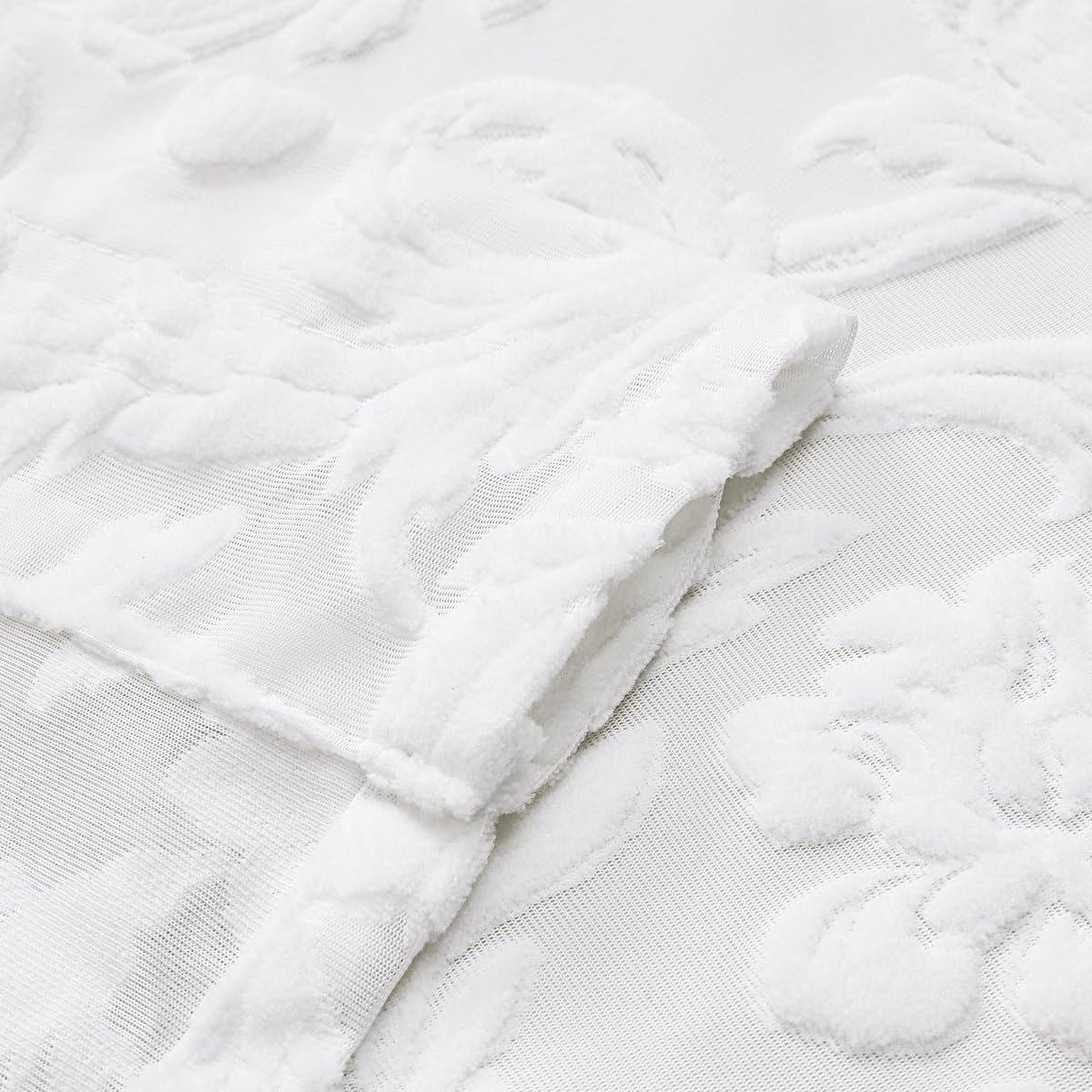 • Cloud-Soft Velvet-Touch Fabric Experience Luxe Sheer quality with thermal-insulated Ivory Sheer voile. The Crush-Resistant fabric retains its Artisanal Embossing texture even after packing, while UV Block 95% protects your interiors from harsh sunlight.