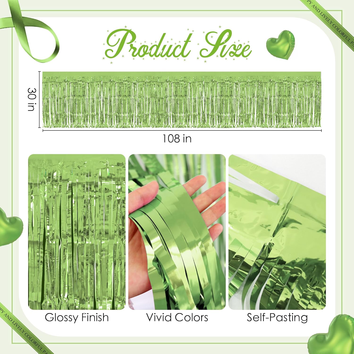 1 Pack Light Green Table Skirts, 29x108" Metallic Foil Tinsel Fringe Table Skirts for Rectangle Tables Streamer Curtains Backdrop, Party Decorations for Birthdays Weddings Holidays