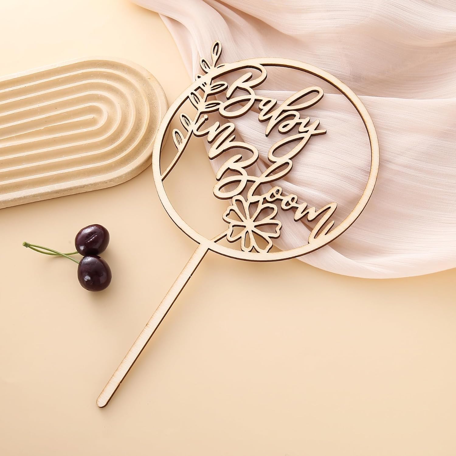 Baby in Bloom Wood Cake Topper - Baby Shower and Gender Reveal Wooden Cake Sign Decoration Photo Props