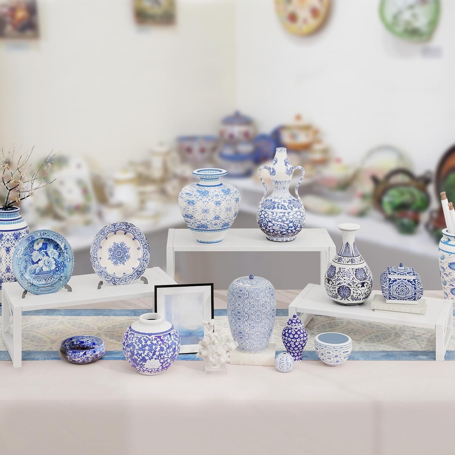 • 【Multifunctional】From cupcakes to succulent plants, cosmetics to shot glasses crafts, jewelry to toys, collectibles to retail goods, all of your most popular collecting will look their best in these wooden risers! Wooden display risers make efficient use of your curio cabinet, showcase, retail store space, trade shows countertop, buffet restaurant desktop, dressing table, etc.