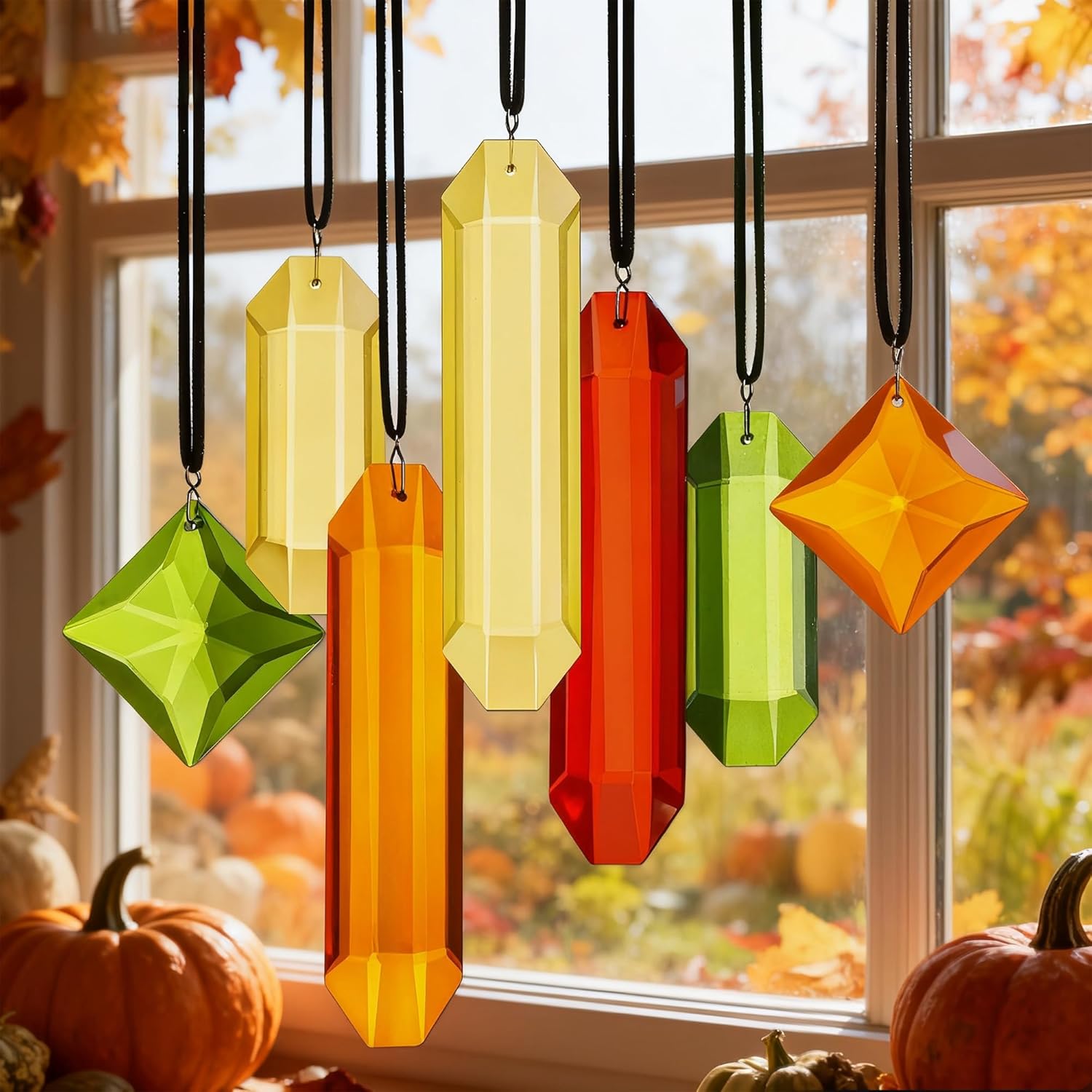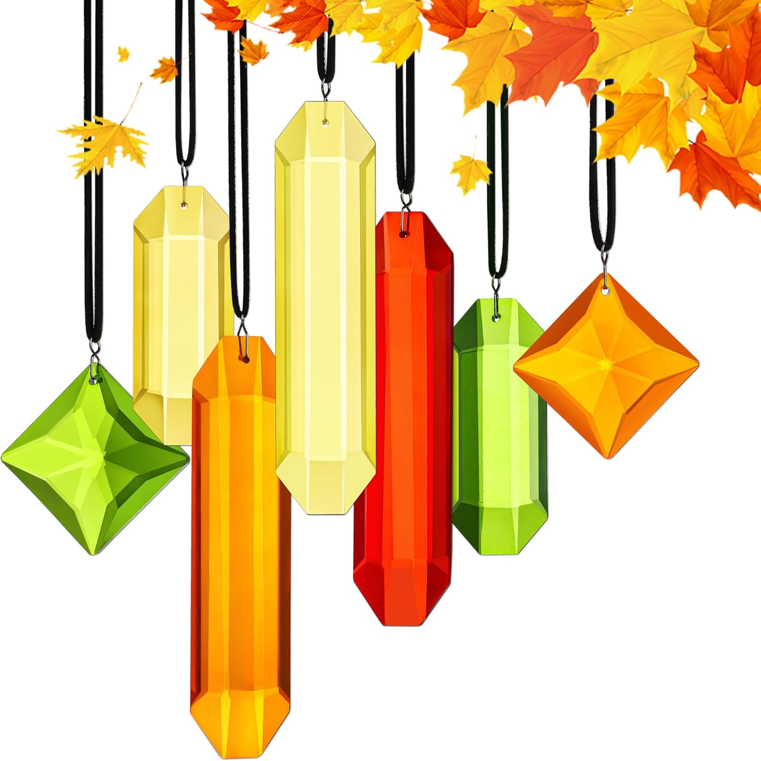 HDCRYSTALGIFTS 7PCS Crystal Prisms Suncatcher for Window Hanging, Rainbow Hanging Crystal Sun Catchers Indoor Window, Home Garden Christmas Decorations (Season Design)