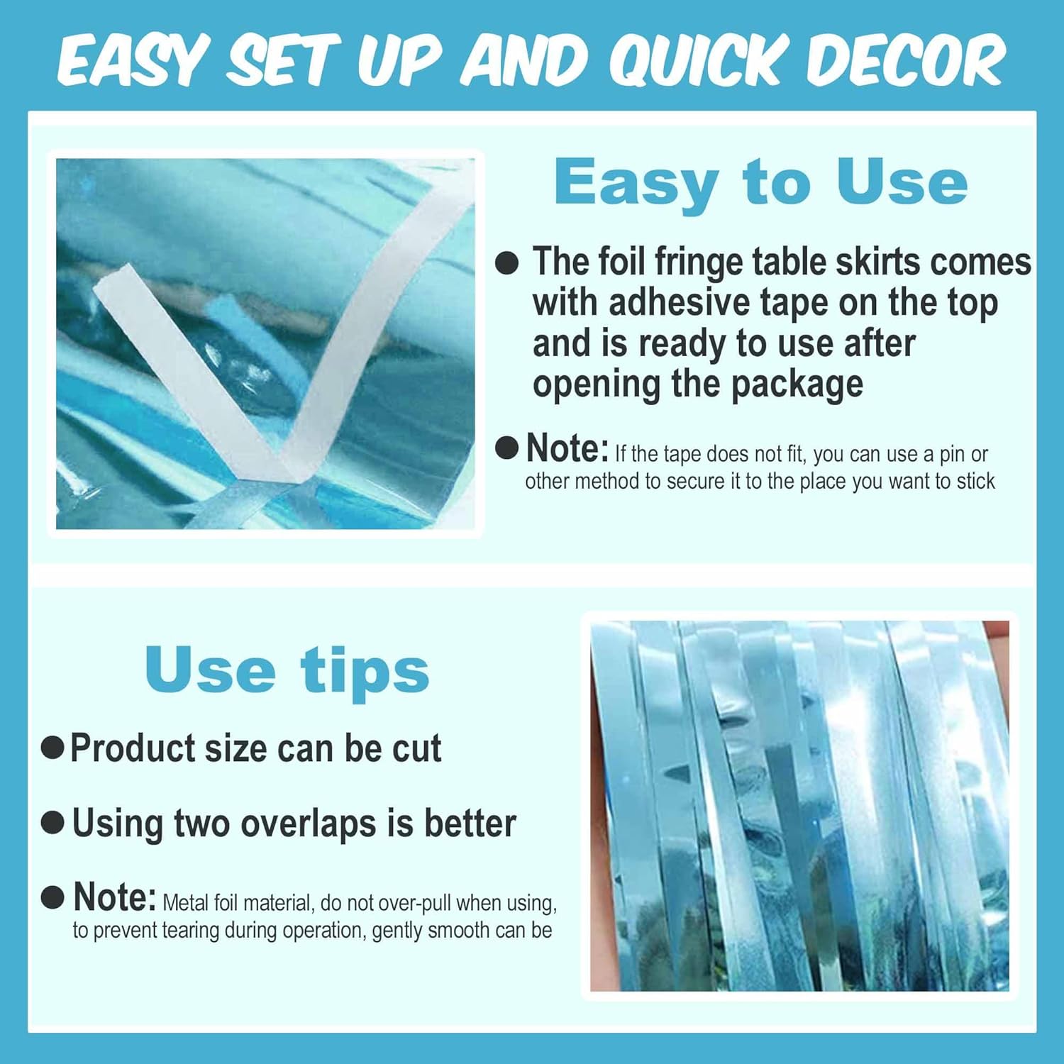 • Easy to Use: Each metallic fringe table skirts comes with self-adhesive tape on the top for easy attachment to your wall or table, just peel off the tape and then stick, easy and fast to install.
