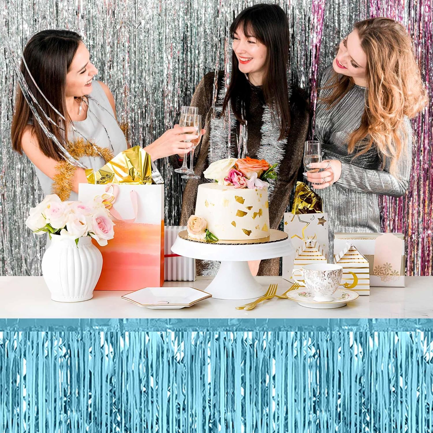 3 Pack 29 x108 Inch Light Blue Foil Fringe Table Skirts Metallic Banner for Tinsel Streamer Garland Backdrop for Parade Floats Mother's Day, Graduate, Birthday, Wedding Party Decoration