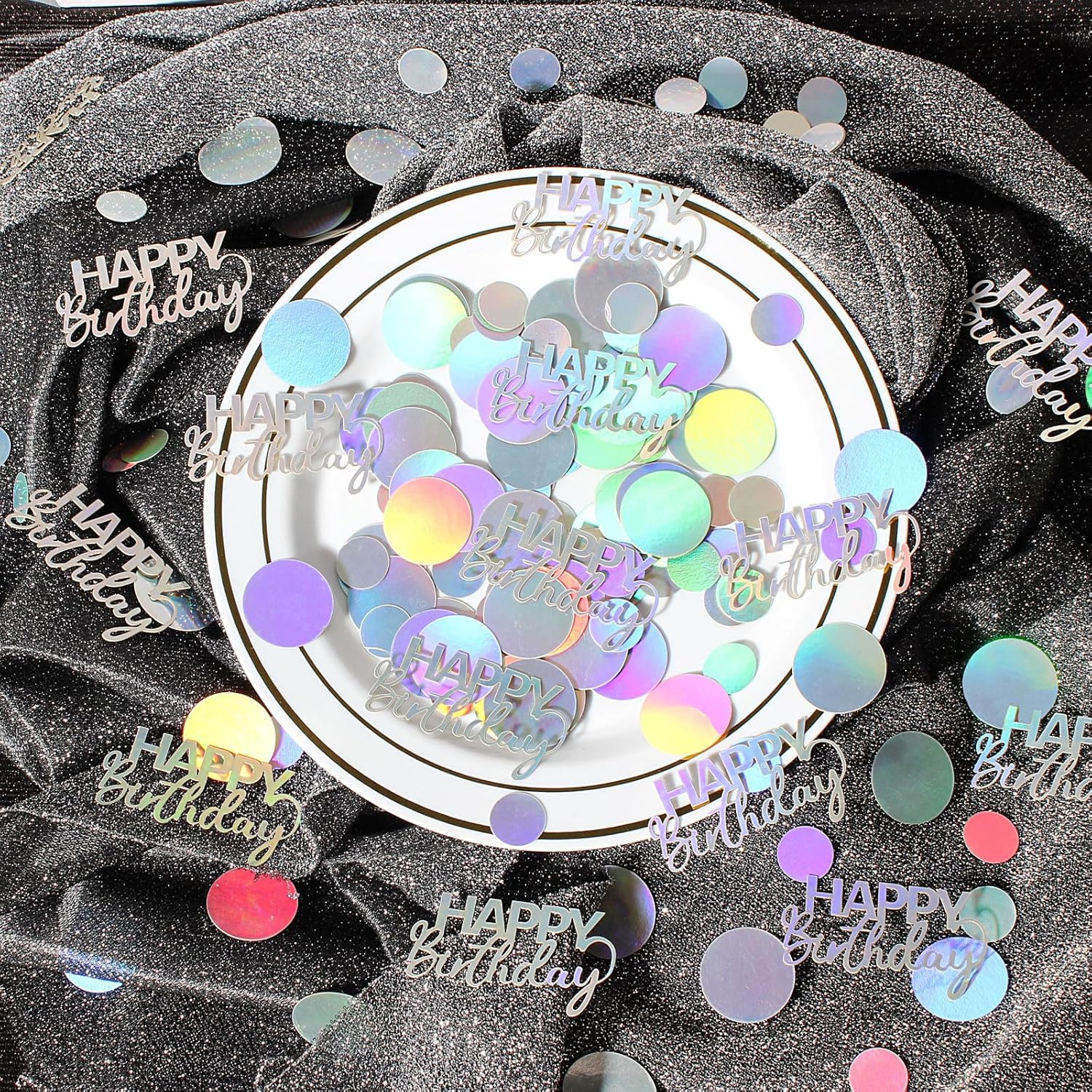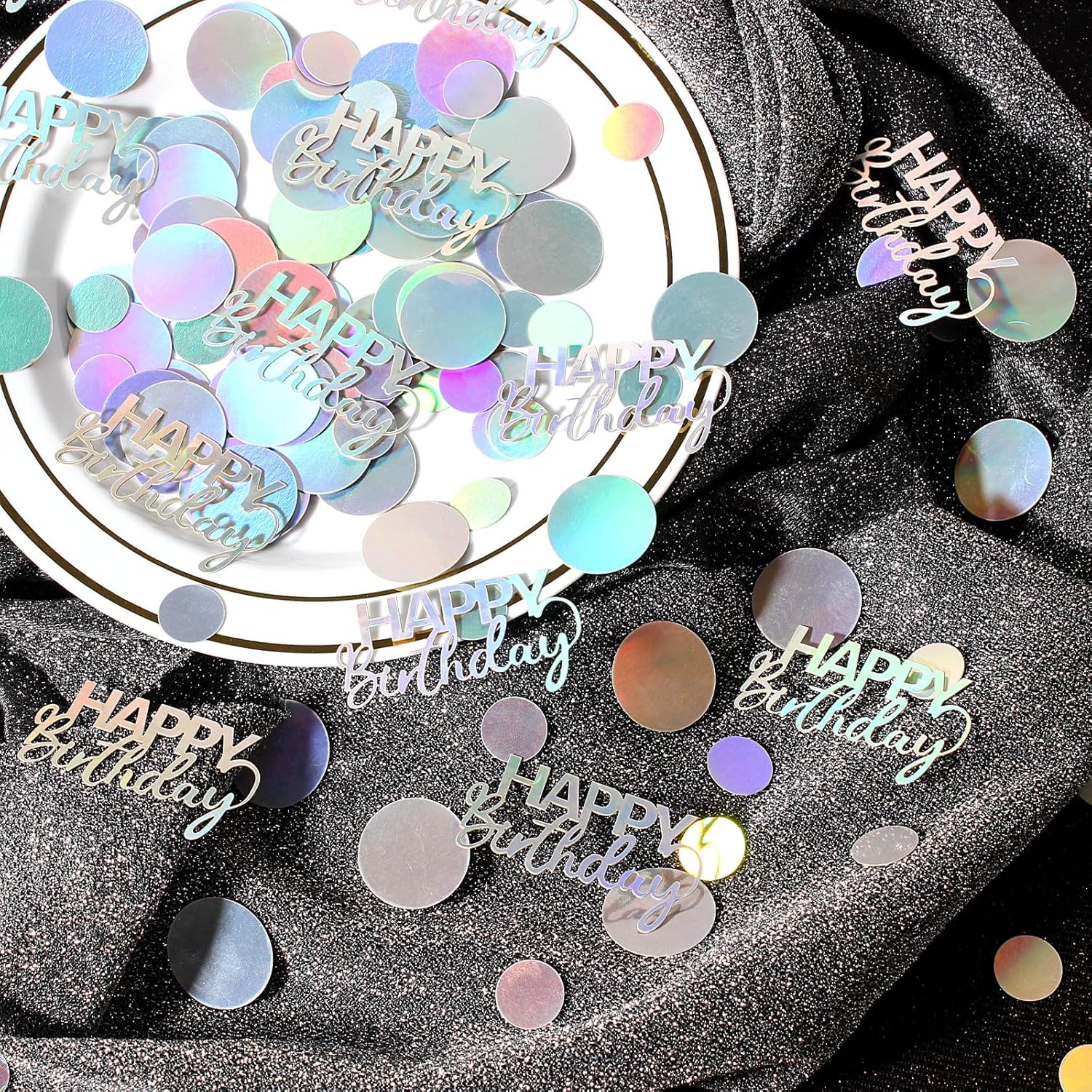300PC Circle Dots Birthday Confetti for Table Iridescent Happy Birthday Table Scatters Party Decorations