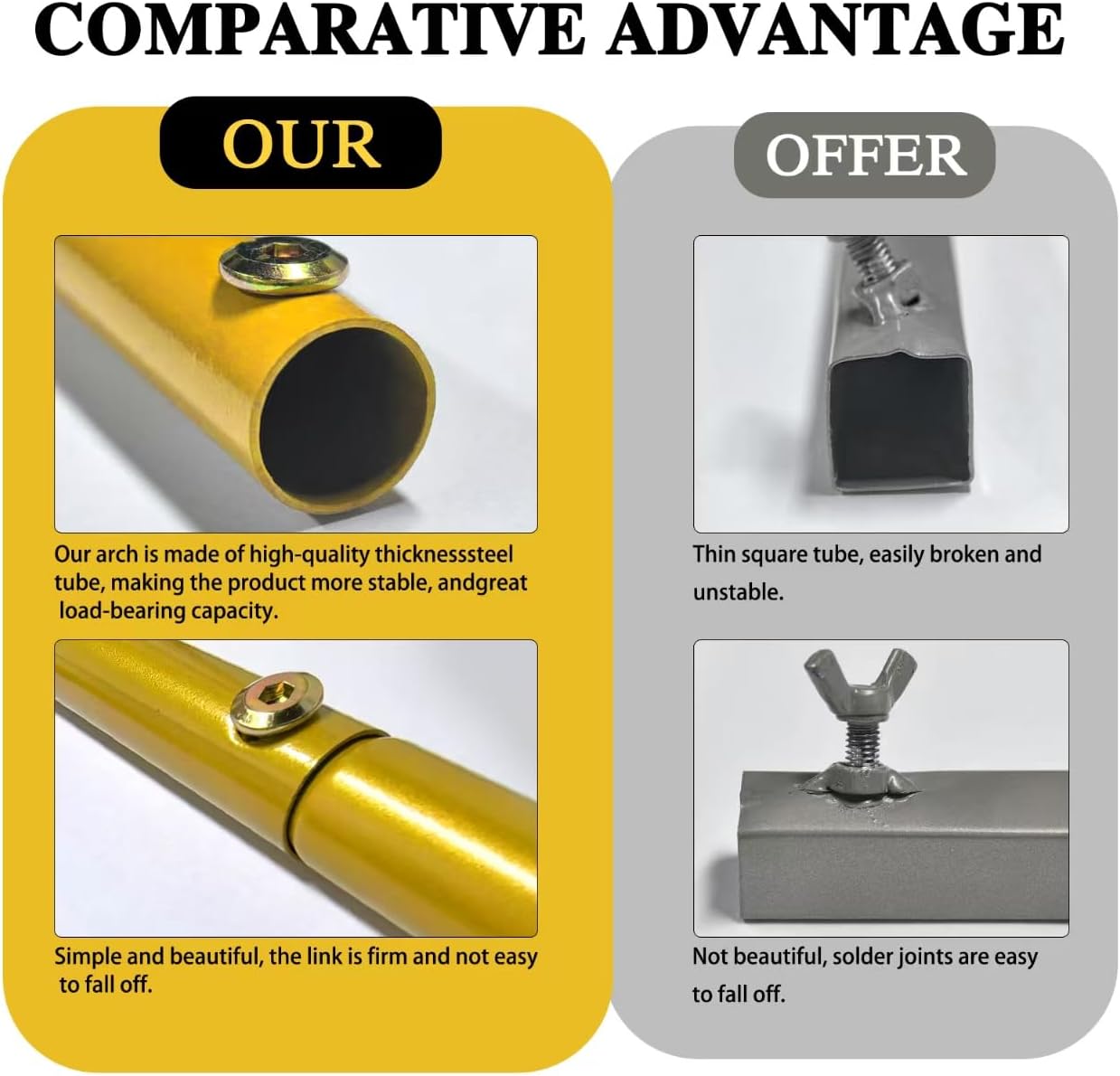 • 【 High quality, easy to assemble 】: The arch is of superior quality and made of sturdy, lightweight, and rust resistant metal steel pipes. It is golden in color and very sturdy. This open background wall bracket has higher load-bearing capacity and can be easily assembled and disassembled with screws and buckles in a few minutes, making it easy to carry and place anywhere. Very suitable for wedding arches, flower arches, and other celebratory events with and flower backgrounds