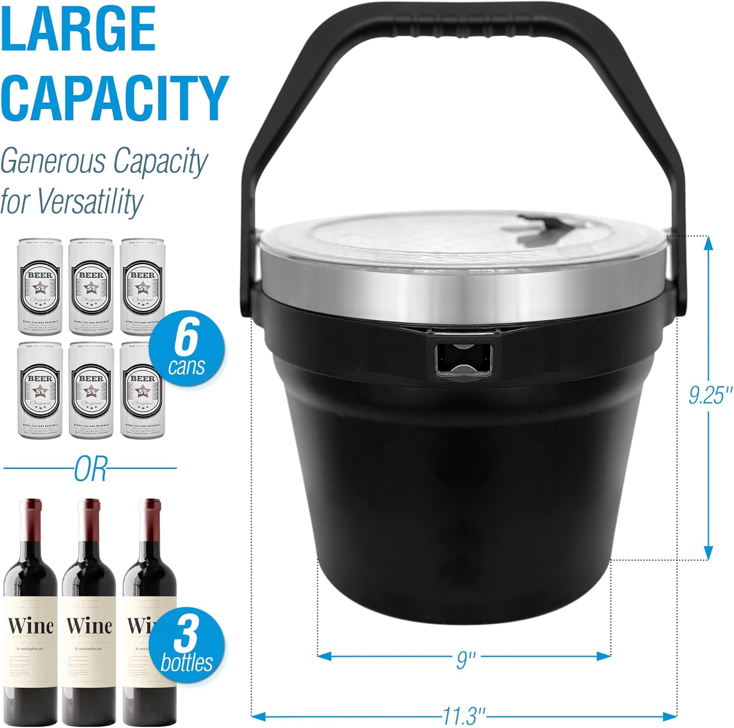 Insulated Ice Bucket with Lid & Scoop-XL Double-Walled, bar Essentials for Entertaining, Holiday Party, Stainless Steel Wine Chiller, Beverage Tub with Handle, Bottle Opener, Great Gift (Black)