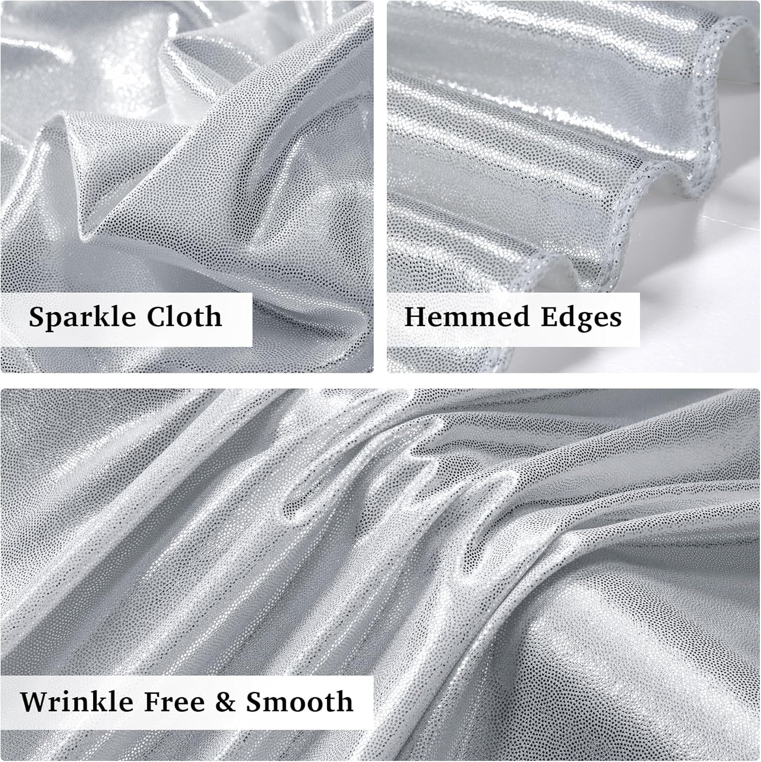 • Glitter Cloth: Made of soft and smooth polyester fabric. Backdrop drapes with bronzing technology is shiny and sparkly. No Sequin Fall OF.