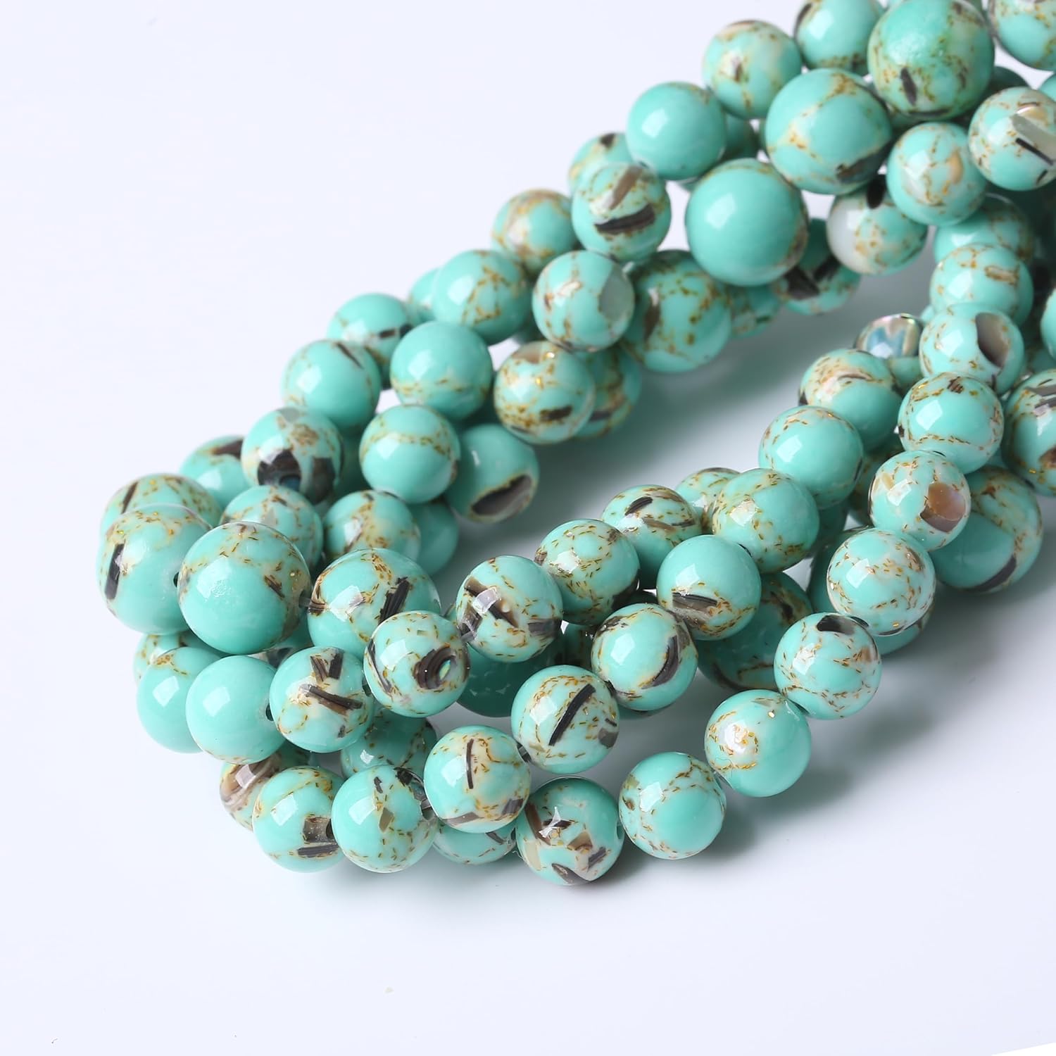 Gold Wire Turquoisee Stone Beads Gemstone Round Crystal Energy Jade Beads Stone Beads for Jewelry Making DIY Bracelet Necklace Jewelry Making 1 Strand 15.5inch 60PCS 6MM