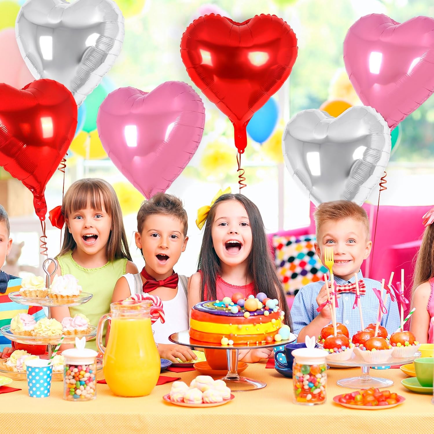 24 Pcs Red Pink Silver Heart Balloons,18 inch Heart Foil Balloons Love Balloons Valentine Balloons for Birthday Party Wedding Engagement Party Baby Shower Valentine Day Decorations (Red Pink Silver)