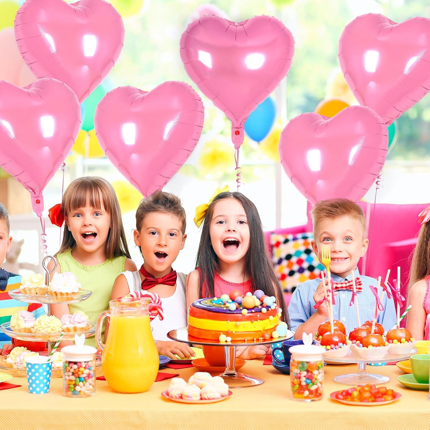24 Pcs Pink Heart Balloons,18 inch Heart Shape Foil Balloons Love Balloons Valentine Balloons for Birthday Party Wedding Engagement Party Baby Shower Valentine Day Decorations (Pink)