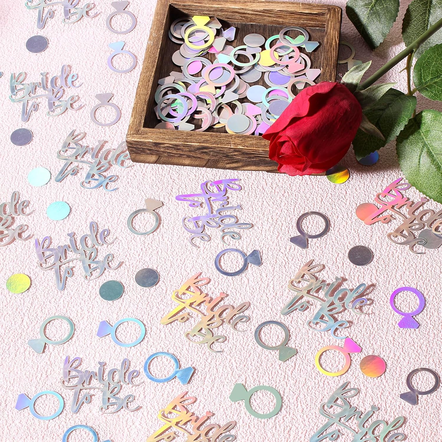 • Great bridal shower table decoration.The ring/bride to be wedding table confetti is shiny,a perfect addition to your bachelorette party ,engagement party,bridal shower,hen night party,valentines’ day surprise, or proposal party decorations supplies.