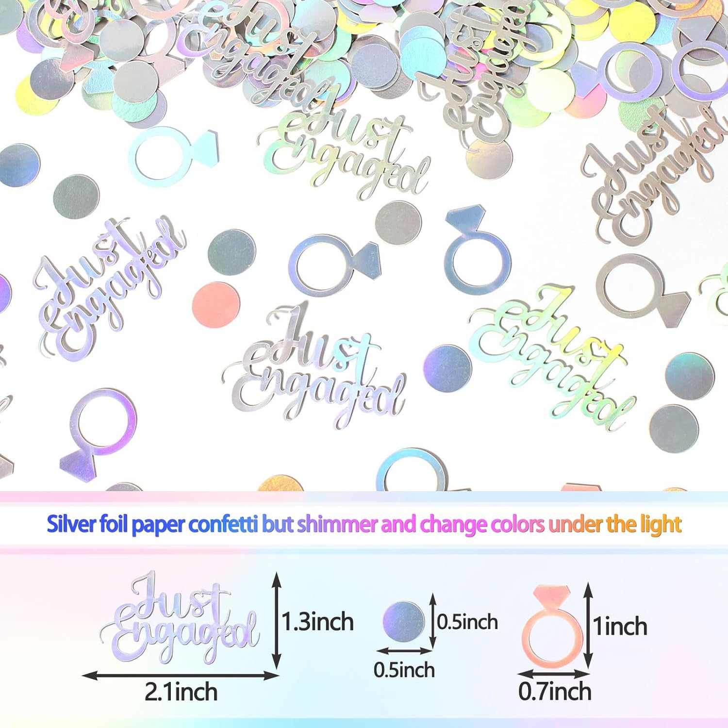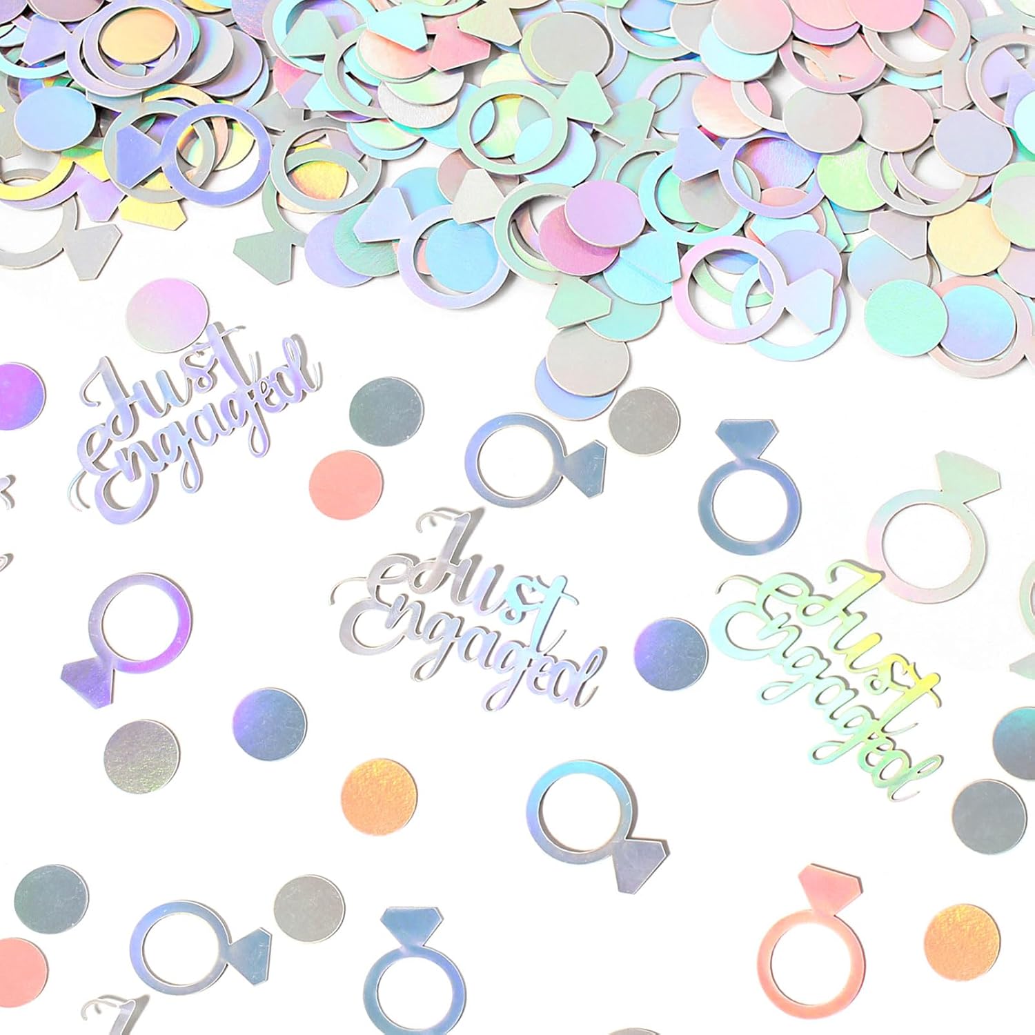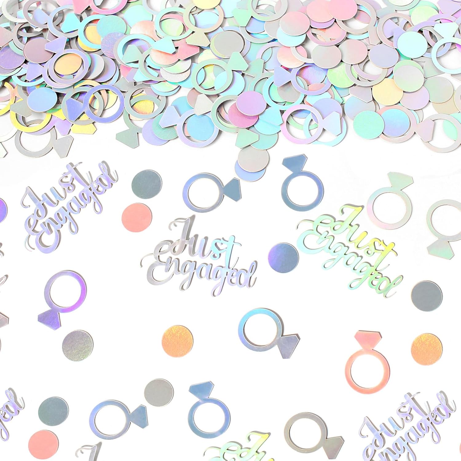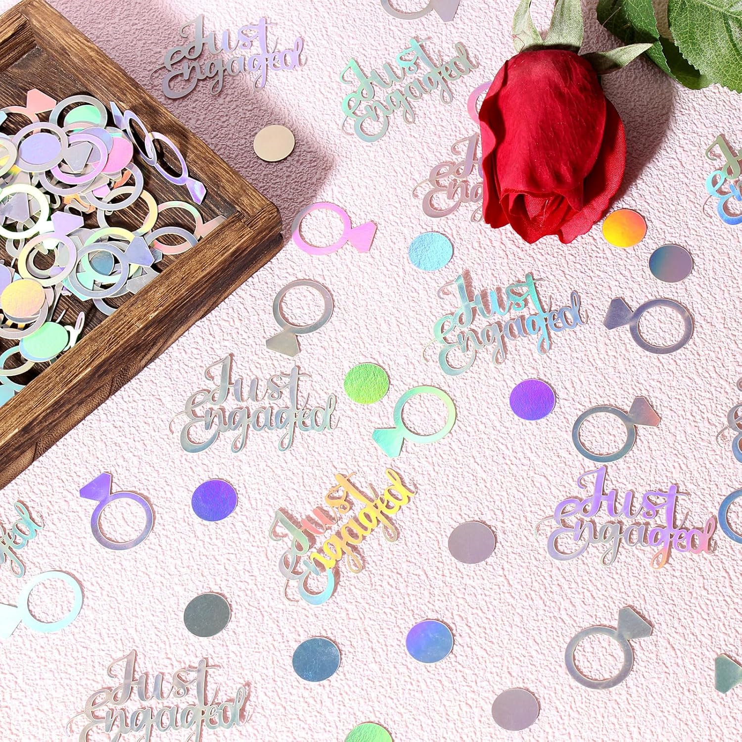 230PC Just Engaged Confetti for Engagement Party Decorations, Wedding Tables, Ring Scatters - Iridescent Themed Bridal Shower, Bachelorette, Hen Party Decor