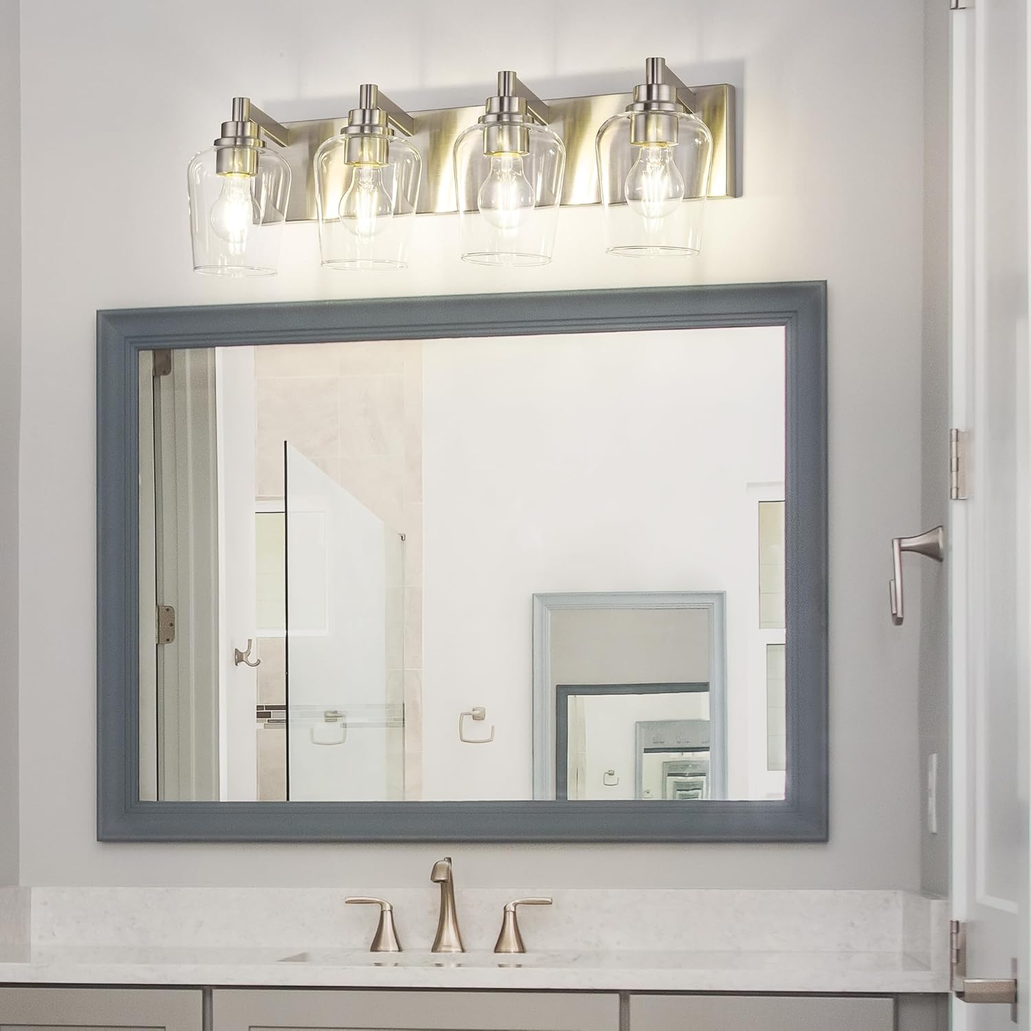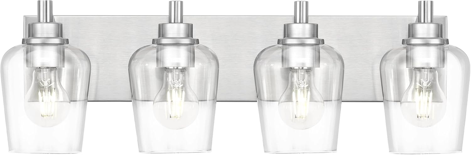 • Bulb Requirements: This brushed nickel bathroom lighting fixtures over mirror requires 4 E26 base bulbs, 60W Max. Fully dimmable when used with a dimmable bulb and dimmer switch (bulb and dimmer switch not included)