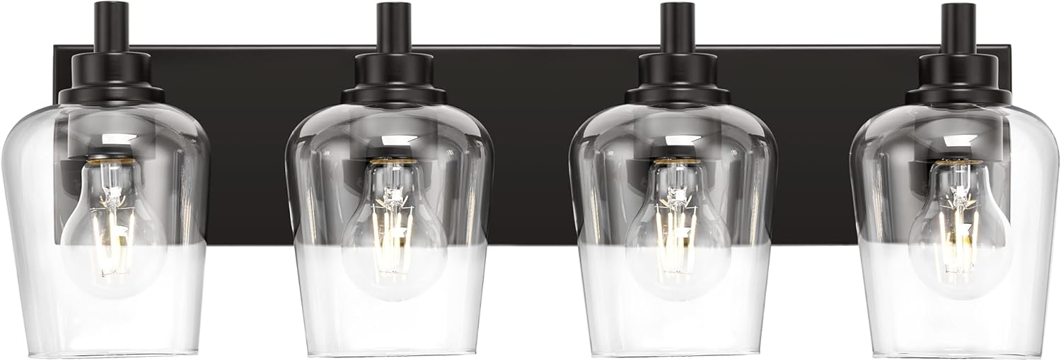 • Bulb Requirements: This black bathroom lighting fixtures over mirror requires 4 E26 base bulbs, 60W Max. 110-120V AC hardwired. Fully dimmable when used with a dimmable bulb and dimmer switch (bulb and dimmer switch not included)
