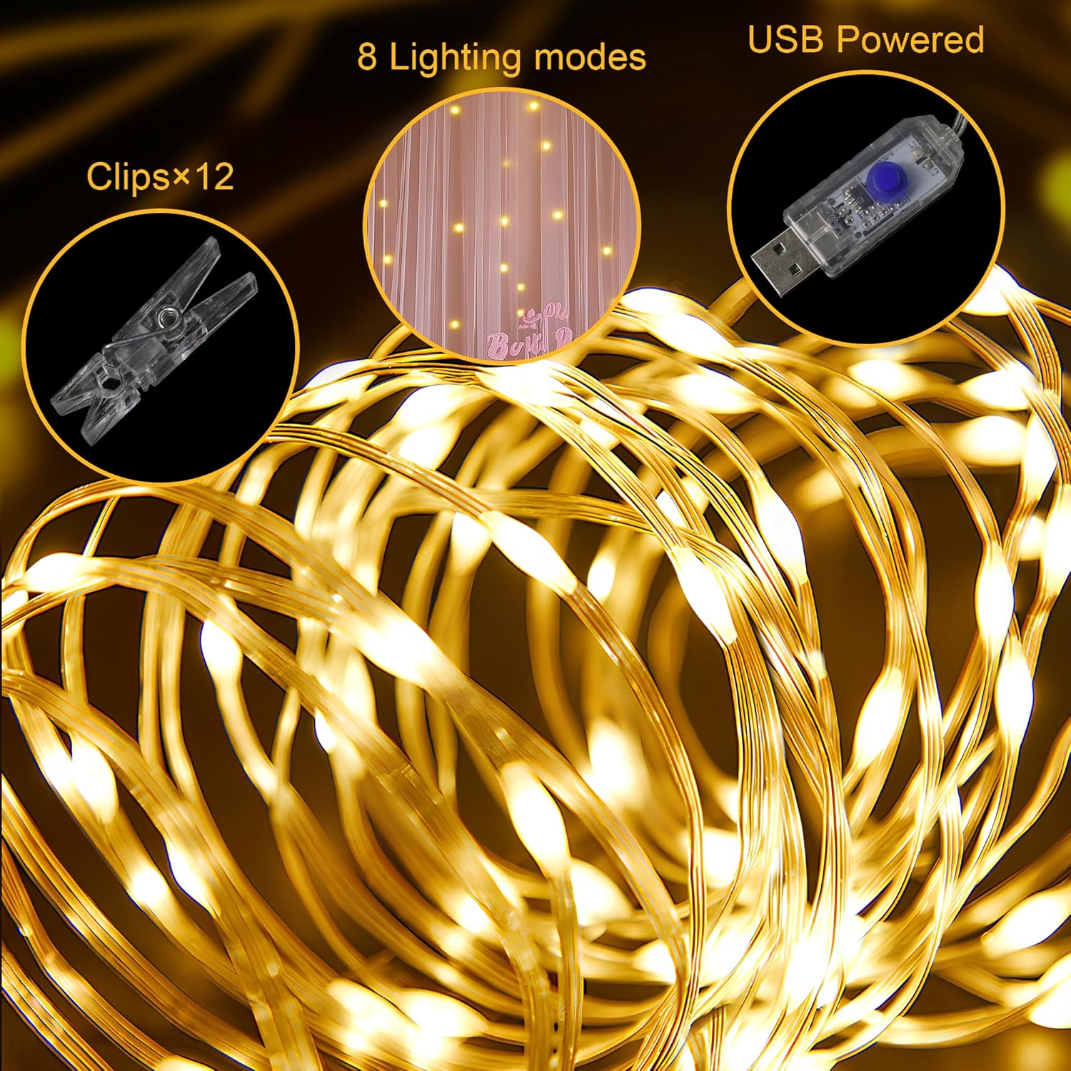 • Easy to Set: light curtain backdrop with rod pockets at the top for easy hanging on backdrop stand, attach the string lights to the sheer backdrop curtains with plastic clips, then untie the 10 light strings and plug the curtains lights into a portable external batteries or an outlet with a USB port. Note: Put away from sharp items to avoid causing the curtain with lights damaged.