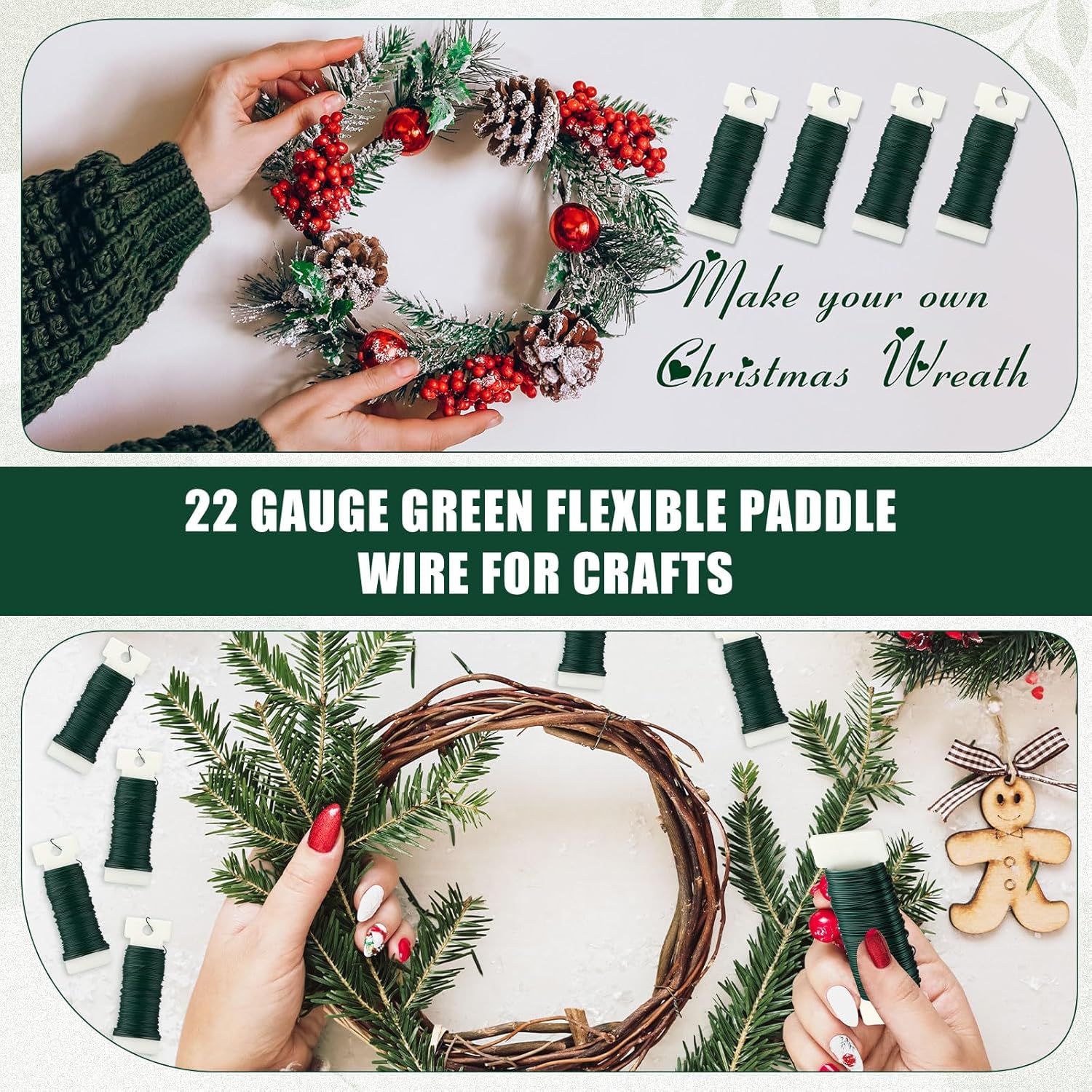 Ferraycle 48 Pack Green Floral Wire 38 Yards 22 Gauge Flexible Paddle Florist Christmas Green Wire for Crafts Christmas Wreaths Tree Garland and Floral Flower Arrangements