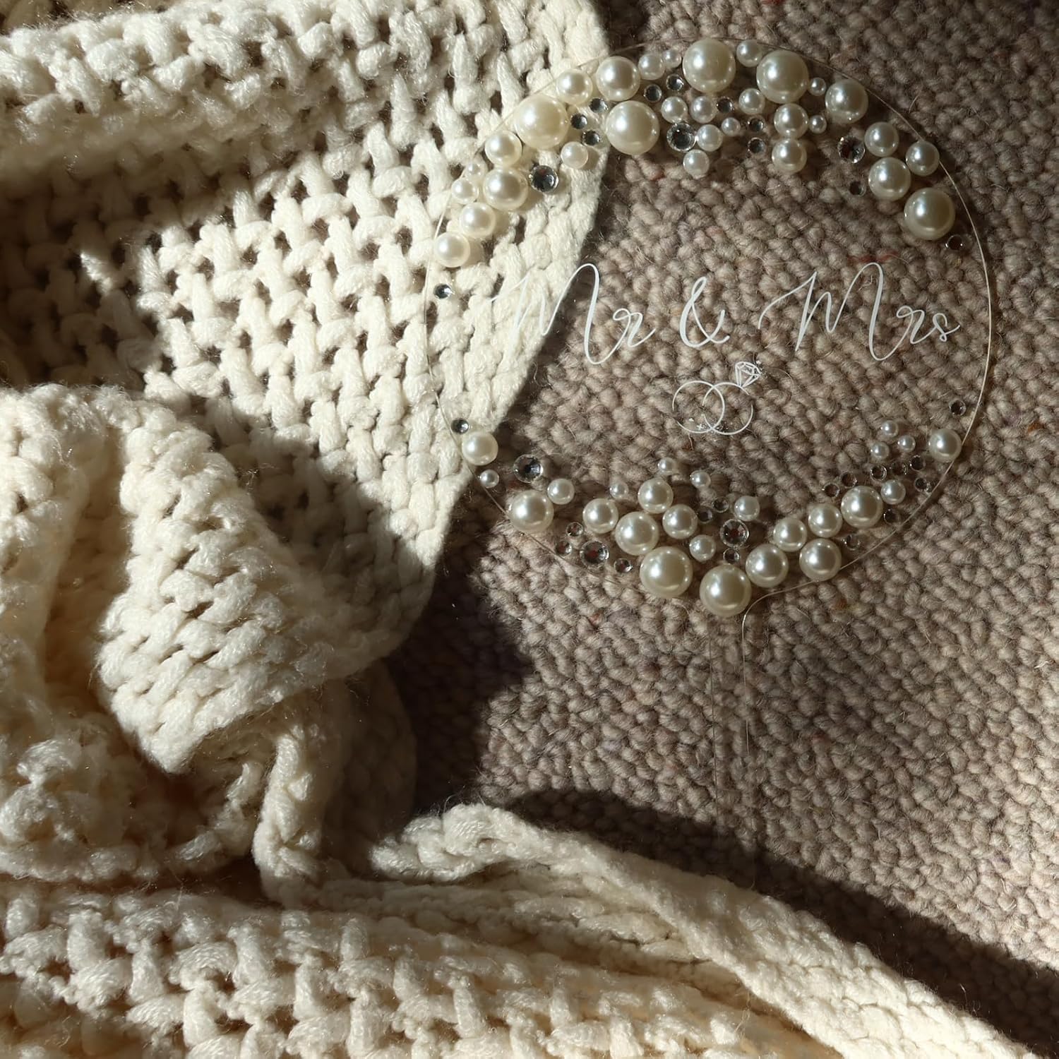 • Material & Color: Acrylic and Simulated diamonds and pearls