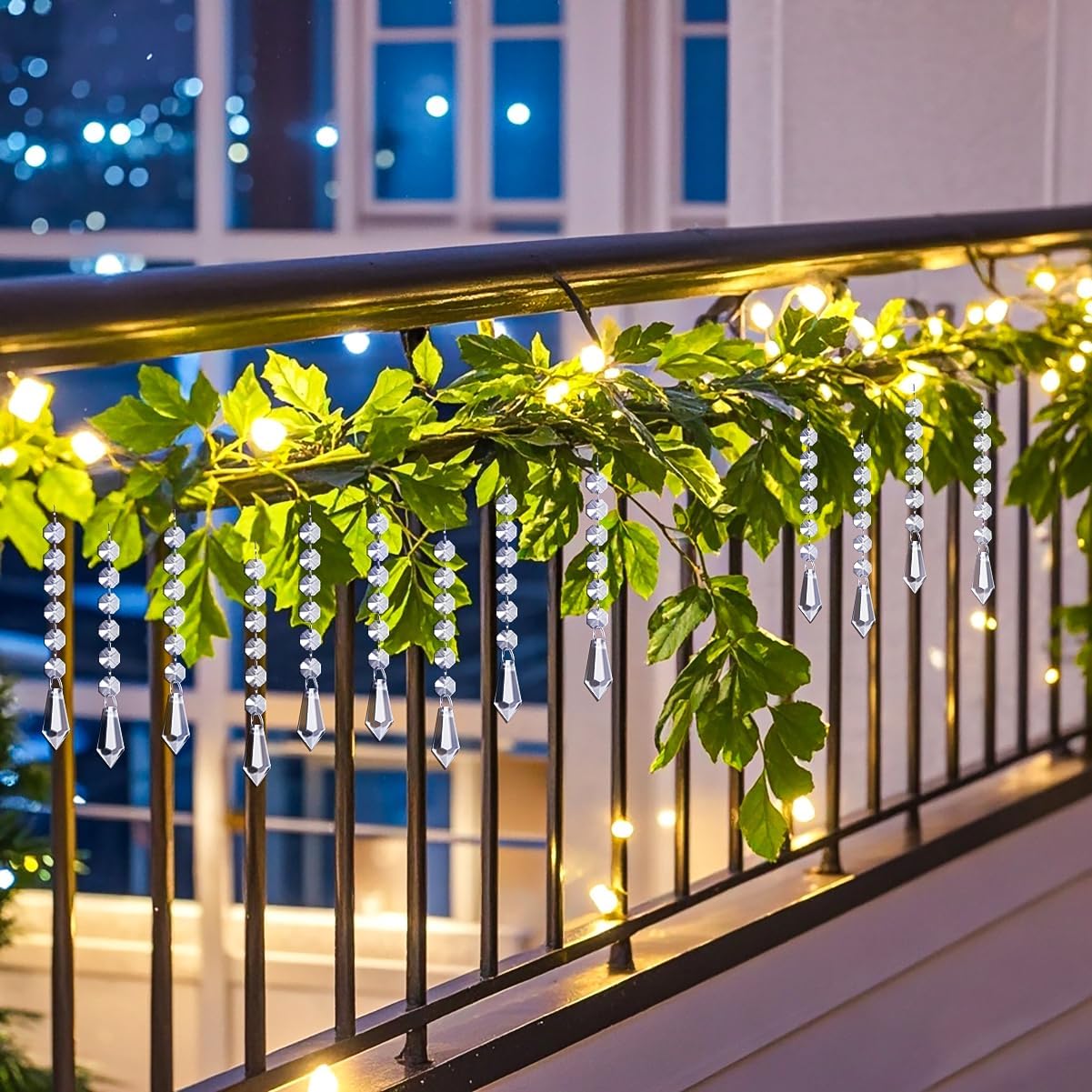 • Elegant Hanging Ornaments: Designed with teardrop acrylic prisms, combined with clear plastic icicle drops adorned with crystal beads, creating a festive and romantic ambiance. Ideal for decorating Christmas trees, centerpieces, chandeliers, windows, and various corners of your home.