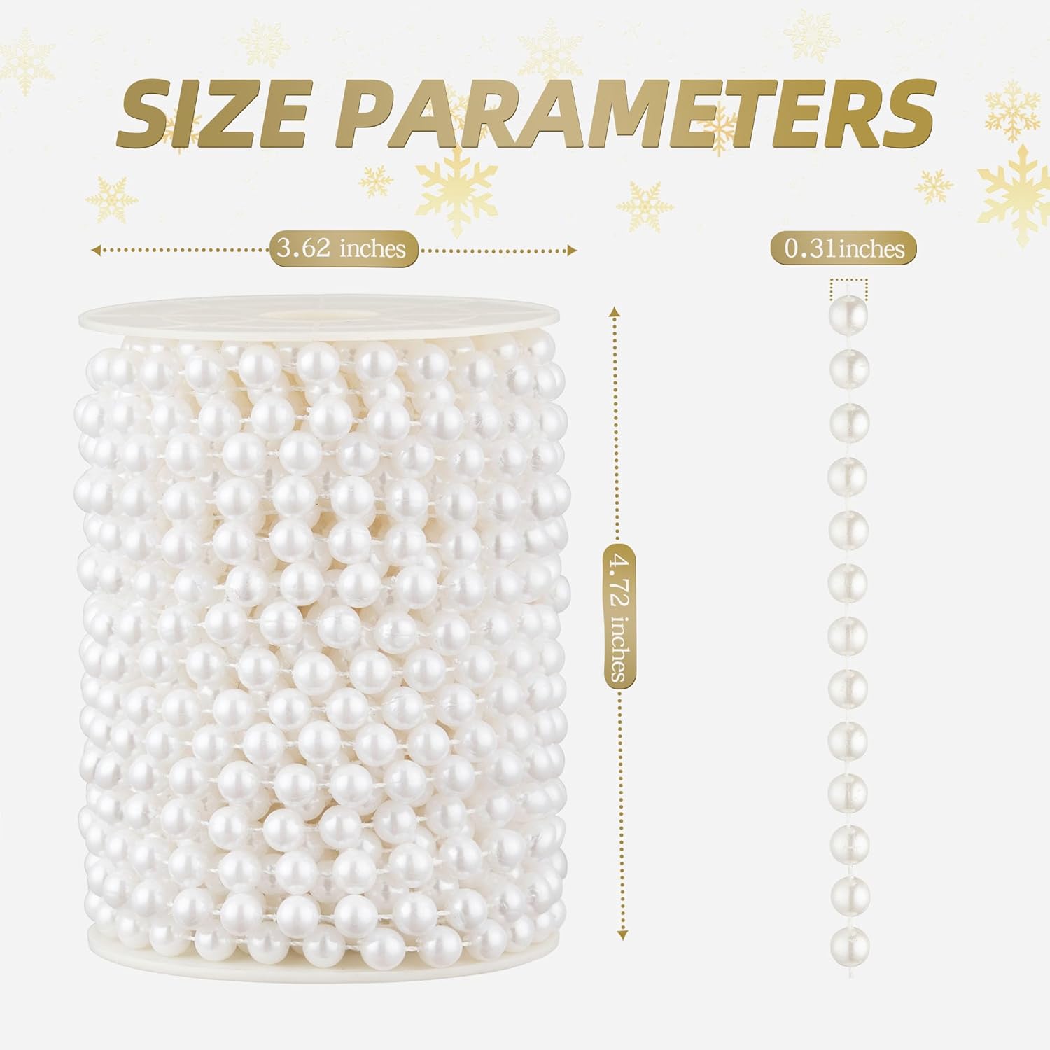 48 Feet Faux Pearl Beads Garland 8mm Craft String Pearls for Wedding Centerpiece Christmas Tree and Flowers Decoration DIY (White)