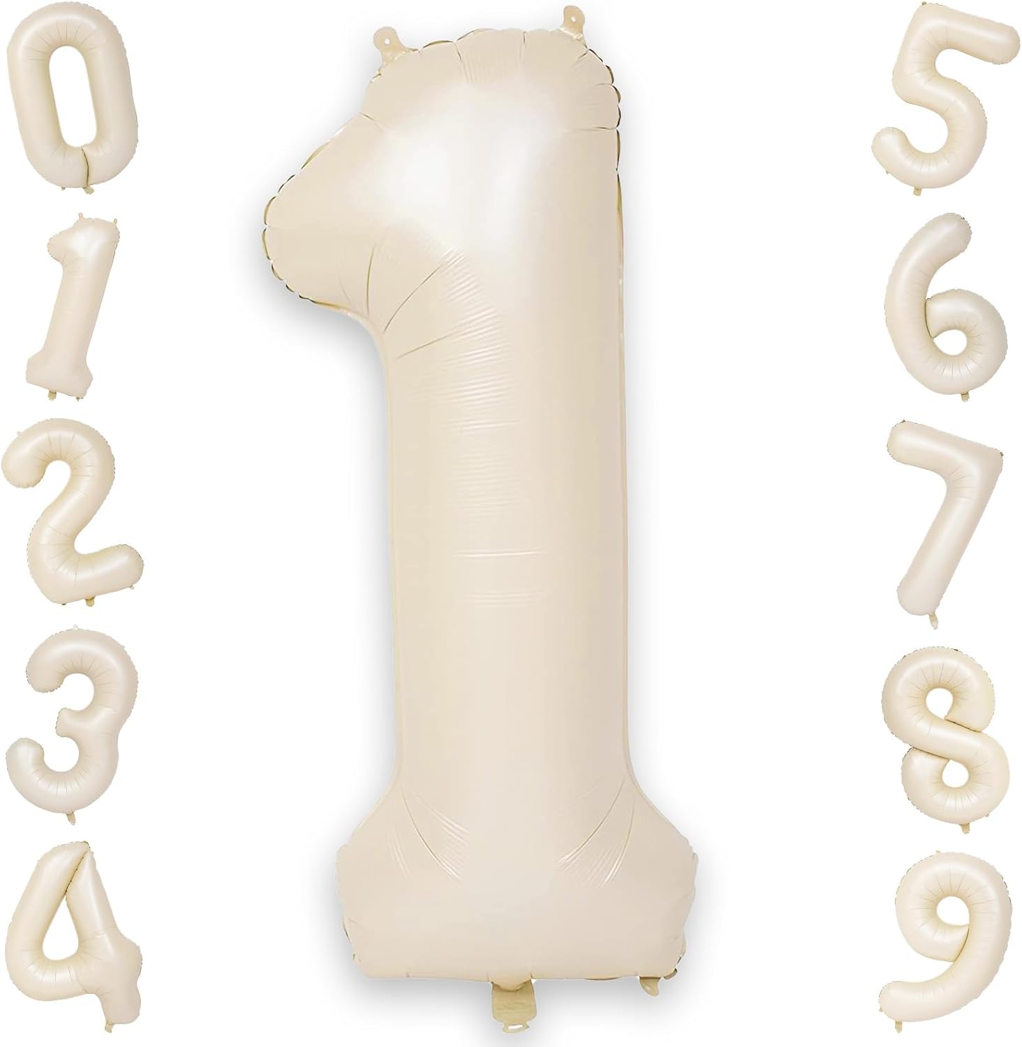 • Cream White Number 1 Balloon 40 Inch: Includes 1pc beige "1" balloon and a straw for easy inflation and deflation. This elegant, neutral digital helium balloon is perfect for birthdays, anniversaries, or special occasions like a 1st, 10th, 21st, or 31st celebration. Mix and match with other numbers and letters to create a personalized, memorable party setup!