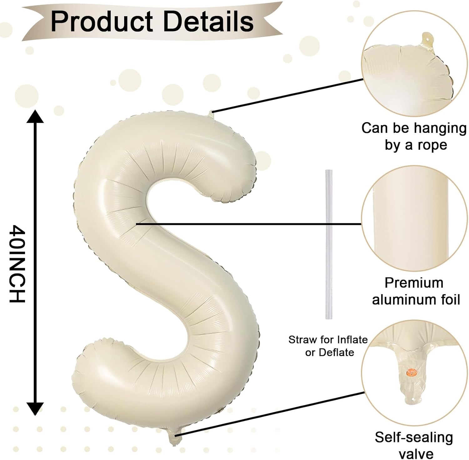 • Cream White Letter S Balloon 40 Inch: Includes 1pc giant beige "S" letter balloon and 1 straw for easy inflation and deflation. Our elegant big beige balloons are perfect for personalized parties. With 26 letters (A-Z) and numbers (1-9) available, you can mix and match to fit your theme.