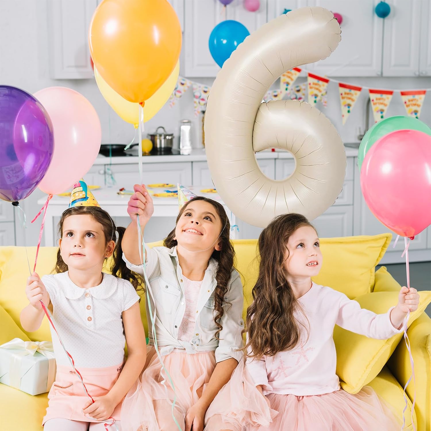 • Cream White Number 6 Balloon 40 Inch: Includes 1pc beige "6" balloon and a straw for easy inflation and deflation. This elegant, neutral digital helium balloon is perfect for birthdays, anniversaries, or special occasions like a 6th, 16th, 26th, or 60th celebration. Mix and match with other numbers and letters to create a personalized, memorable party setup!