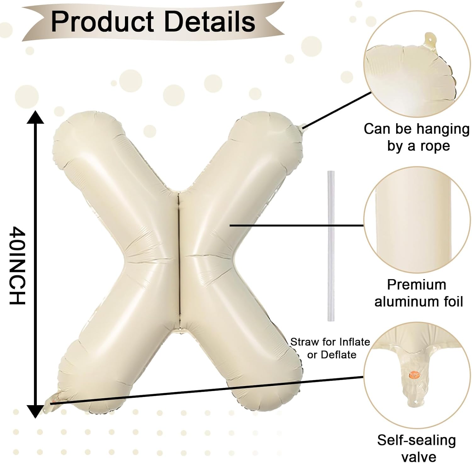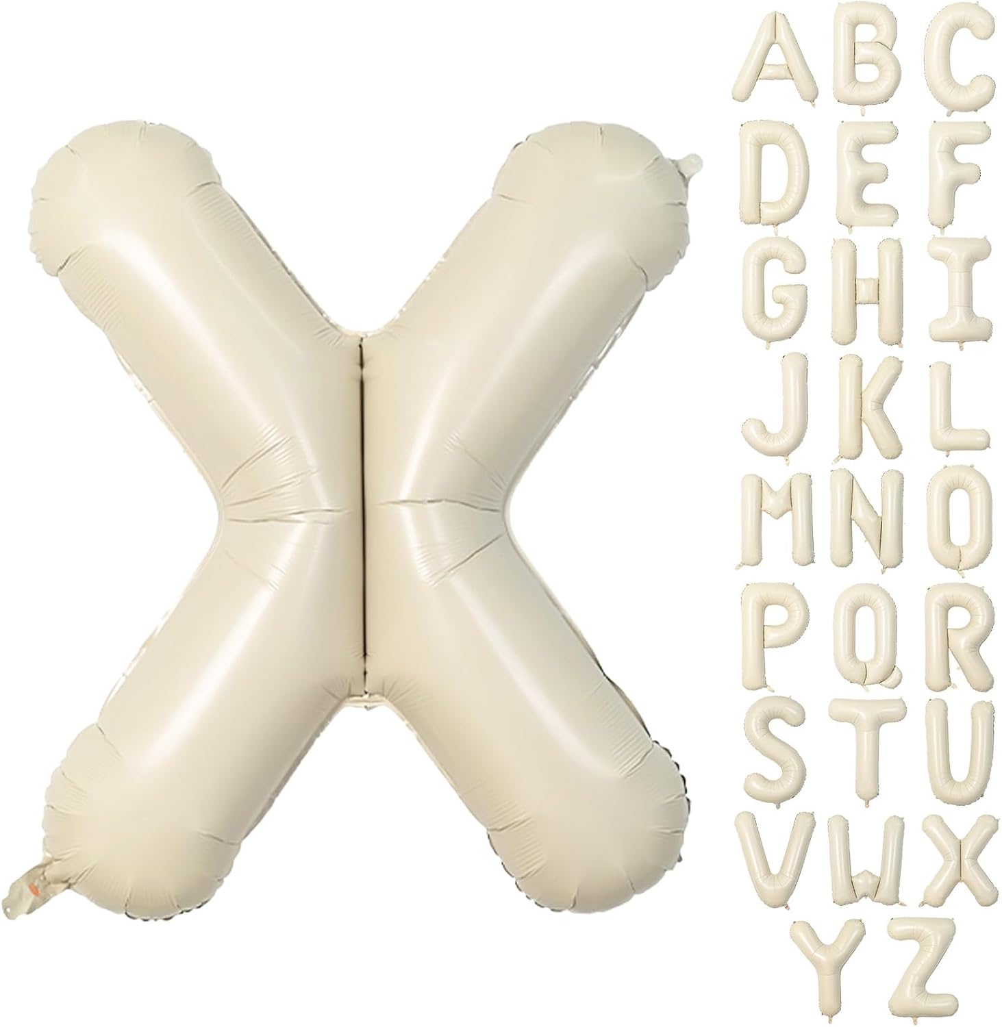 • Cream White Letter X Balloon 40 Inch: Includes 1pc giant beige "X" letter balloon and 1 straw for easy inflation and deflation. Our elegant big beige balloons are perfect for personalized parties. With 26 letters (A-Z) and numbers (1-9) available, you can mix and match to fit your theme.