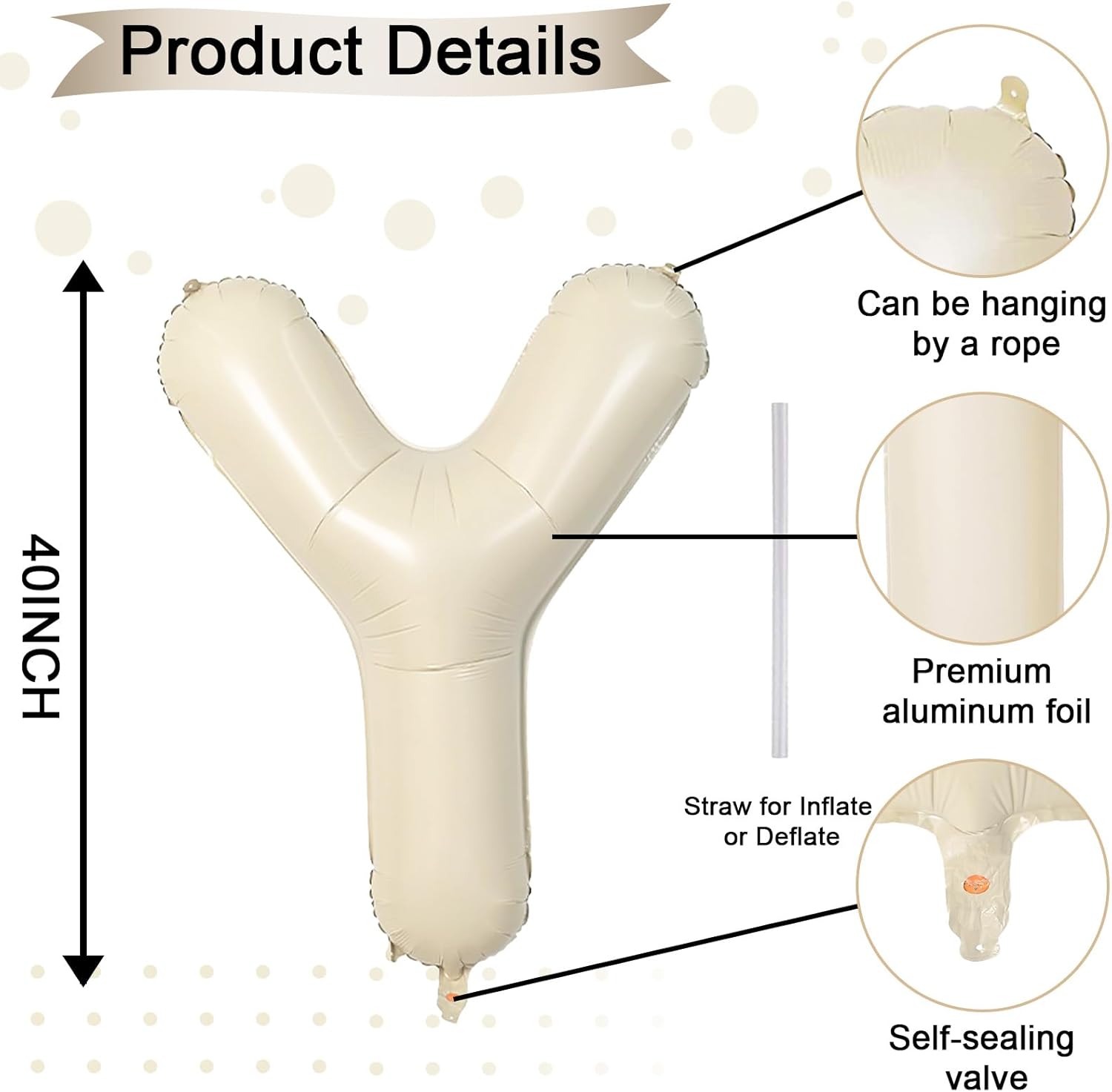 • Cream White Letter Y Balloon 40 Inch: Includes 1pc giant beige "Y" letter balloon and 1 straw for easy inflation and deflation. Our elegant big beige balloons are perfect for personalized parties. With 26 letters (A-Z) and numbers (1-9) available, you can mix and match to fit your theme.
