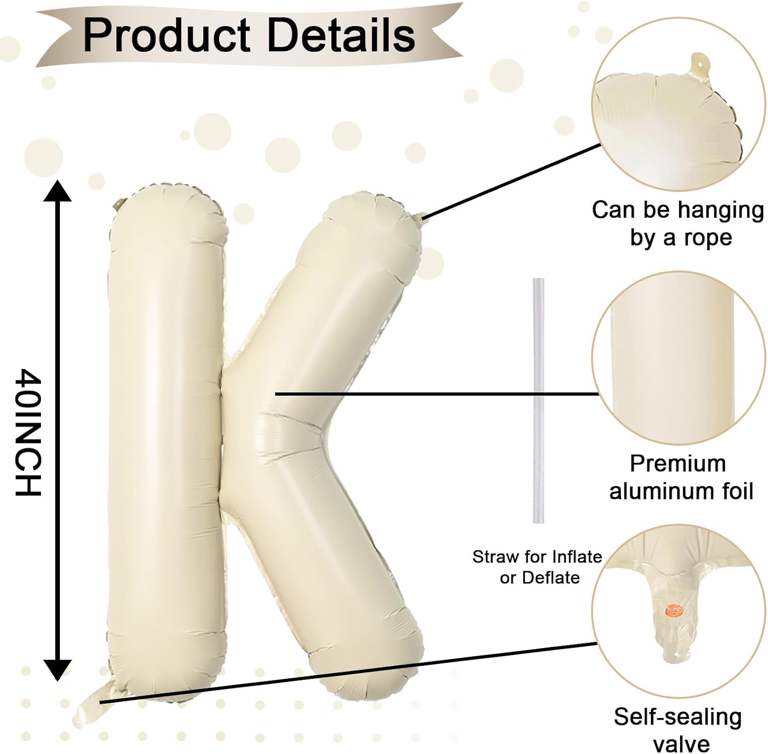 • Cream White Letter K Balloon 40 Inch: Includes 1pc giant beige "K" letter balloon and 1 straw for easy inflation and deflation. Our elegant big beige balloons are perfect for personalized parties. With 26 letters (A-Z) and numbers (1-9) available, you can mix and match to fit your theme.