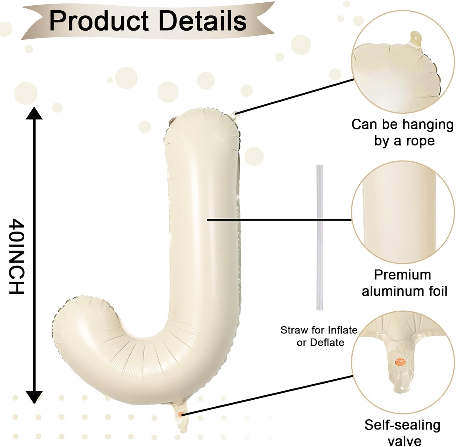 • Cream White Letter J Balloon 40 Inch: Includes 1pc giant beige "J" letter balloon and 1 straw for easy inflation and deflation. Our elegant big beige balloons are perfect for personalized parties. With 26 letters (A-Z) and numbers (1-9) available, you can mix and match to fit your theme.