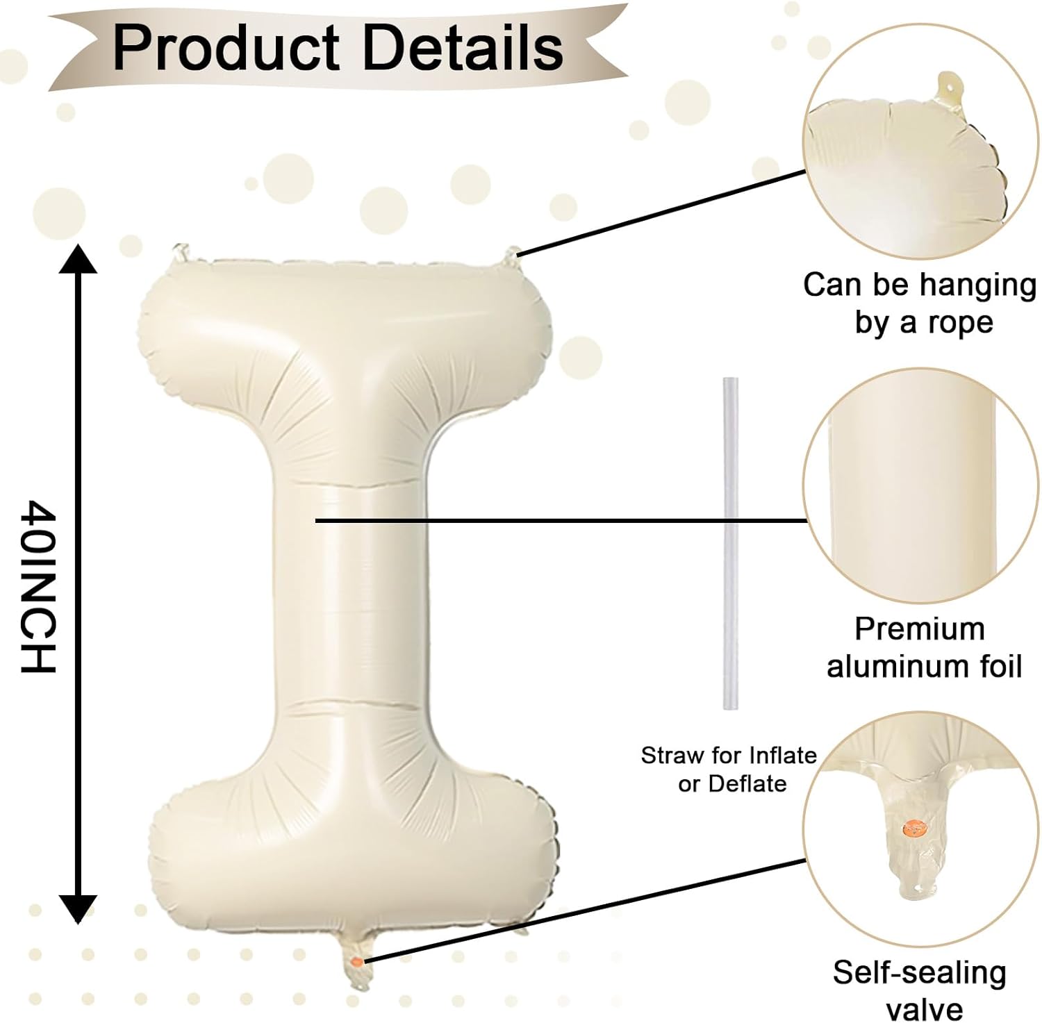 • Cream White Letter I Balloon 40 Inch: Includes 1pc giant beige "I" letter balloon and 1 straw for easy inflation and deflation. Our elegant big beige balloons are perfect for personalized parties. With 26 letters (A-Z) and numbers (1-9) available, you can mix and match to fit your theme.