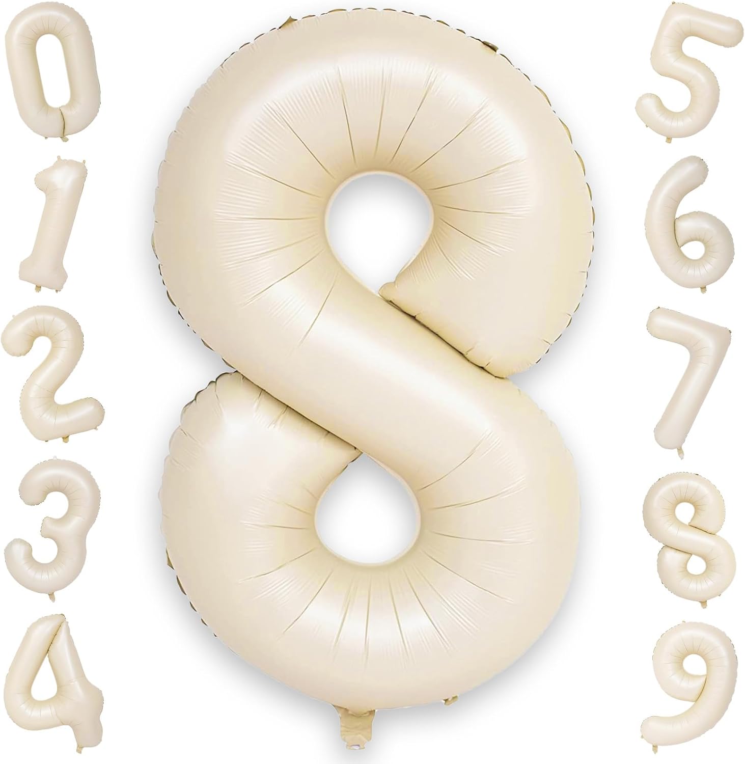 • Cream White Number 8 Balloon 40 Inch: Includes 1pc beige "8" balloon and a straw for easy inflation and deflation. This elegant, neutral digital helium balloon is perfect for birthdays, anniversaries, or special occasions like an 8th, 18th, 28th, or 80th celebration. Mix and match with other numbers and letters to create a personalized, memorable party setup!