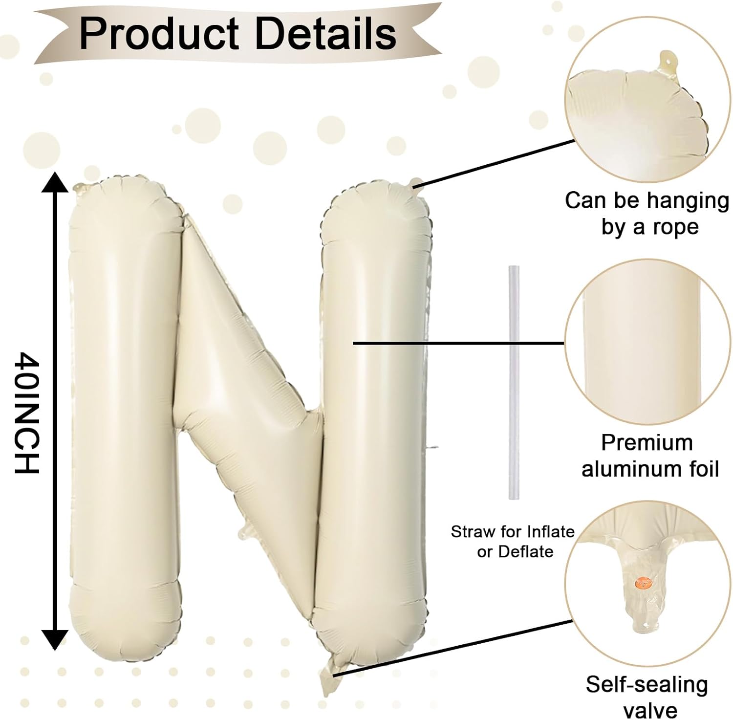 • Cream White Letter N Balloon 40 Inch: Includes 1pc giant beige "N" letter balloon and 1 straw for easy inflation and deflation. Our elegant big beige balloons are perfect for personalized parties. With 26 letters (A-Z) and numbers (1-9) available, you can mix and match to fit your theme.