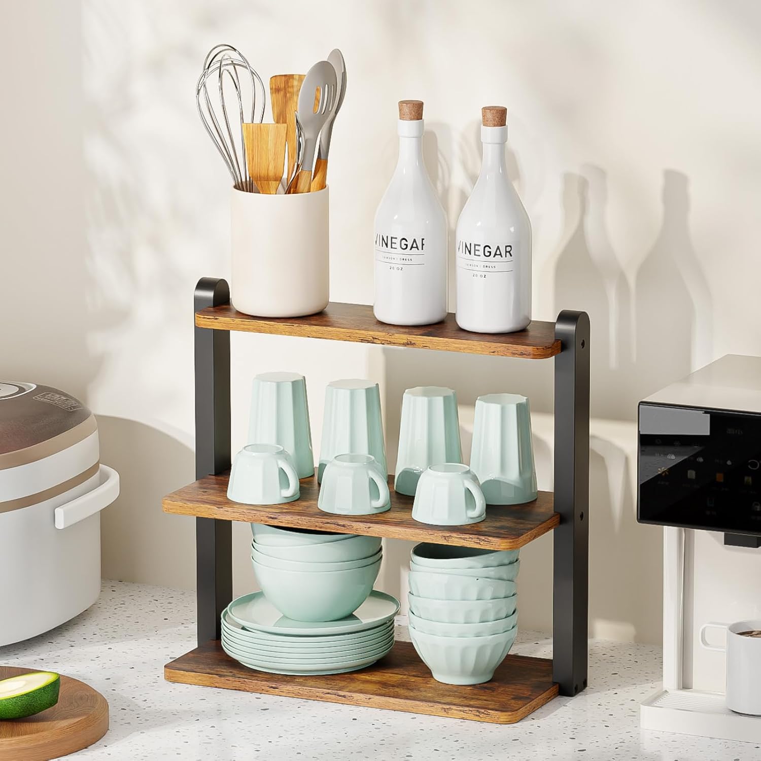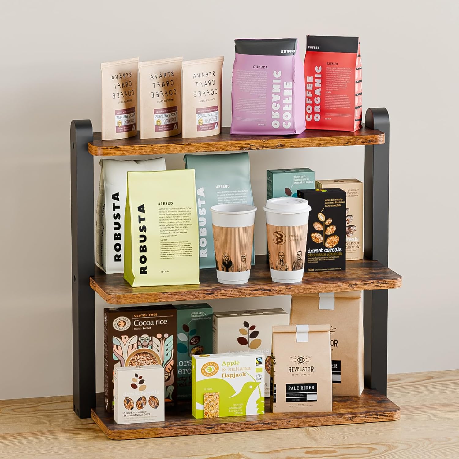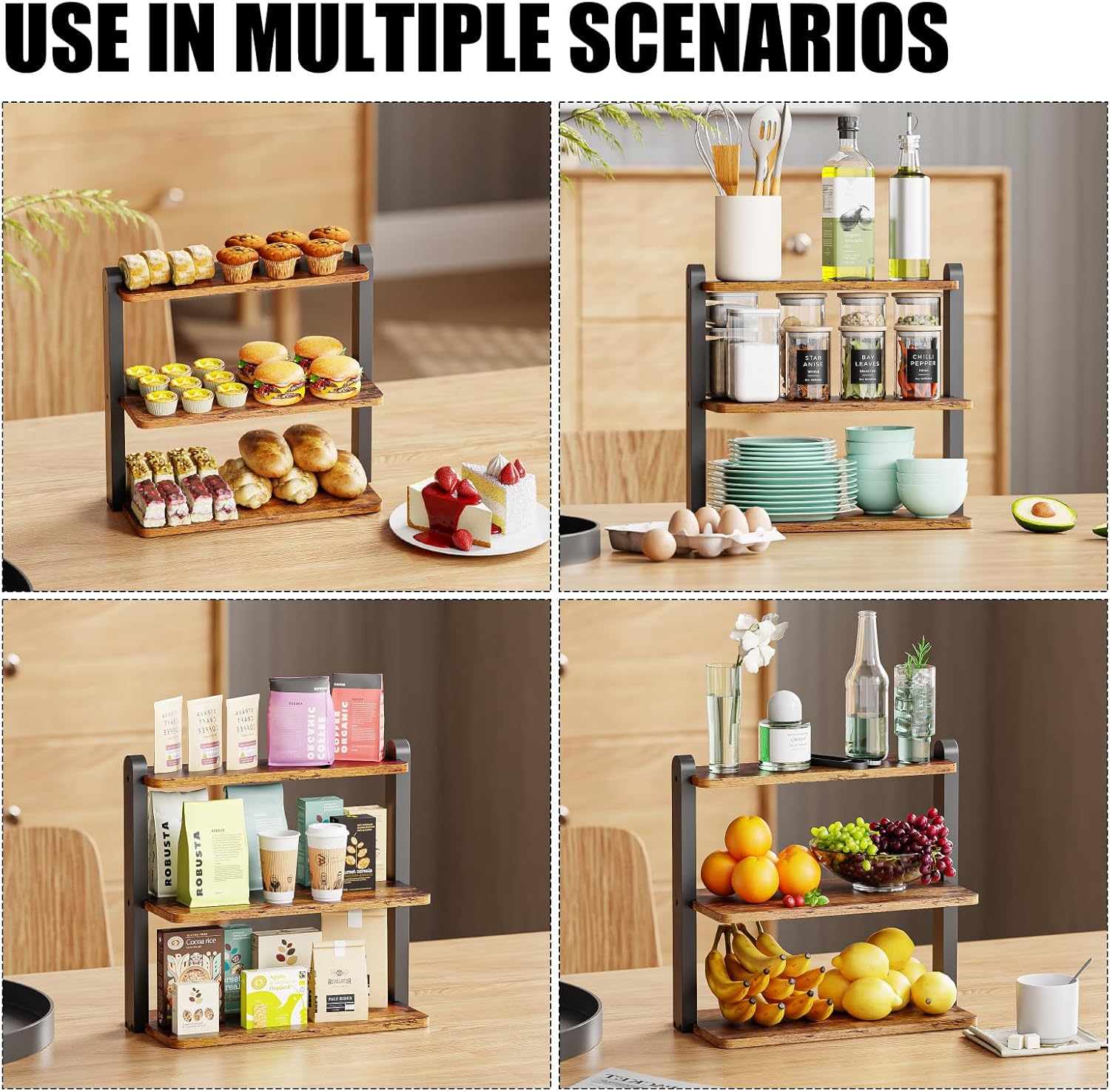 • Versatile display: Three wooden shelves with frames provide enough space to display cakes, cupcakes, pastries, condiment racks, cutlery, mugs and more.