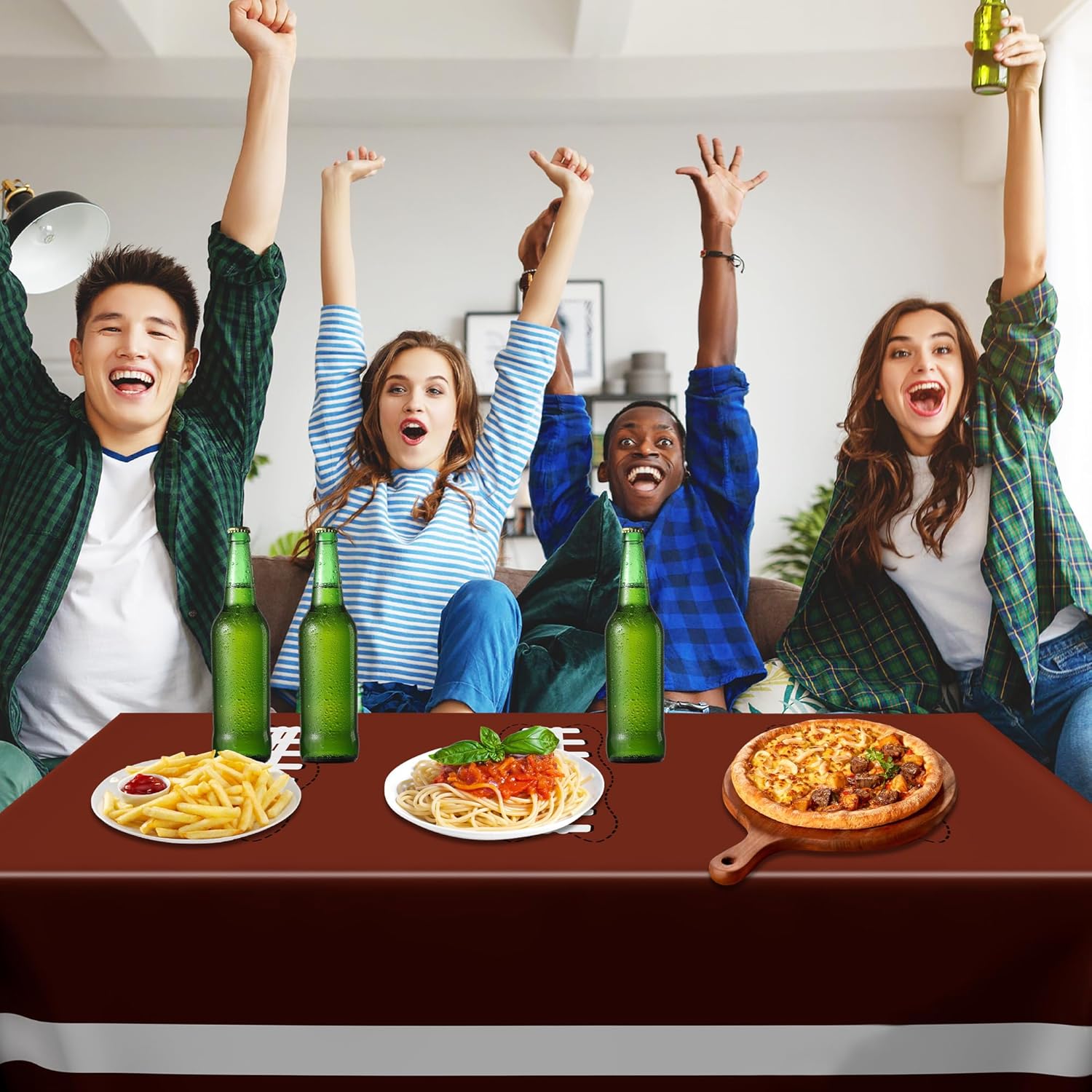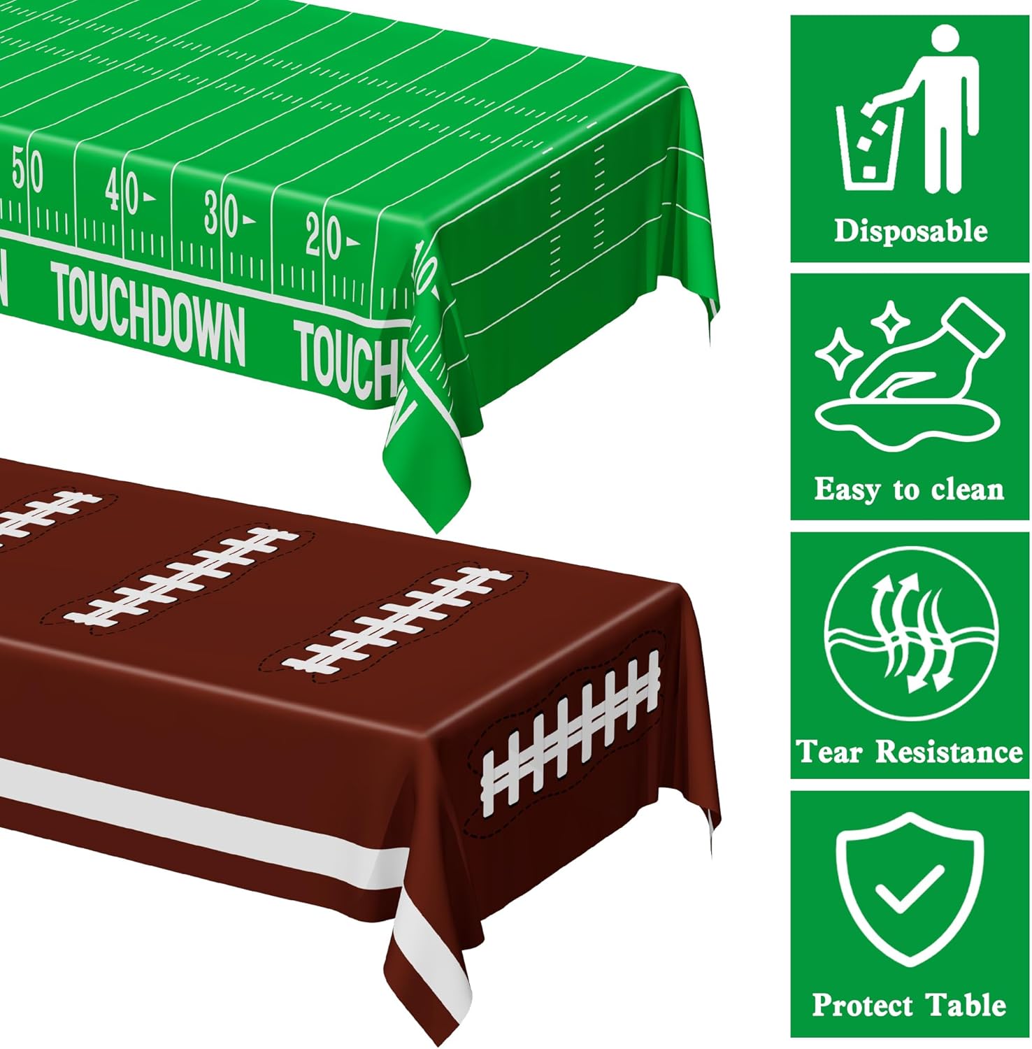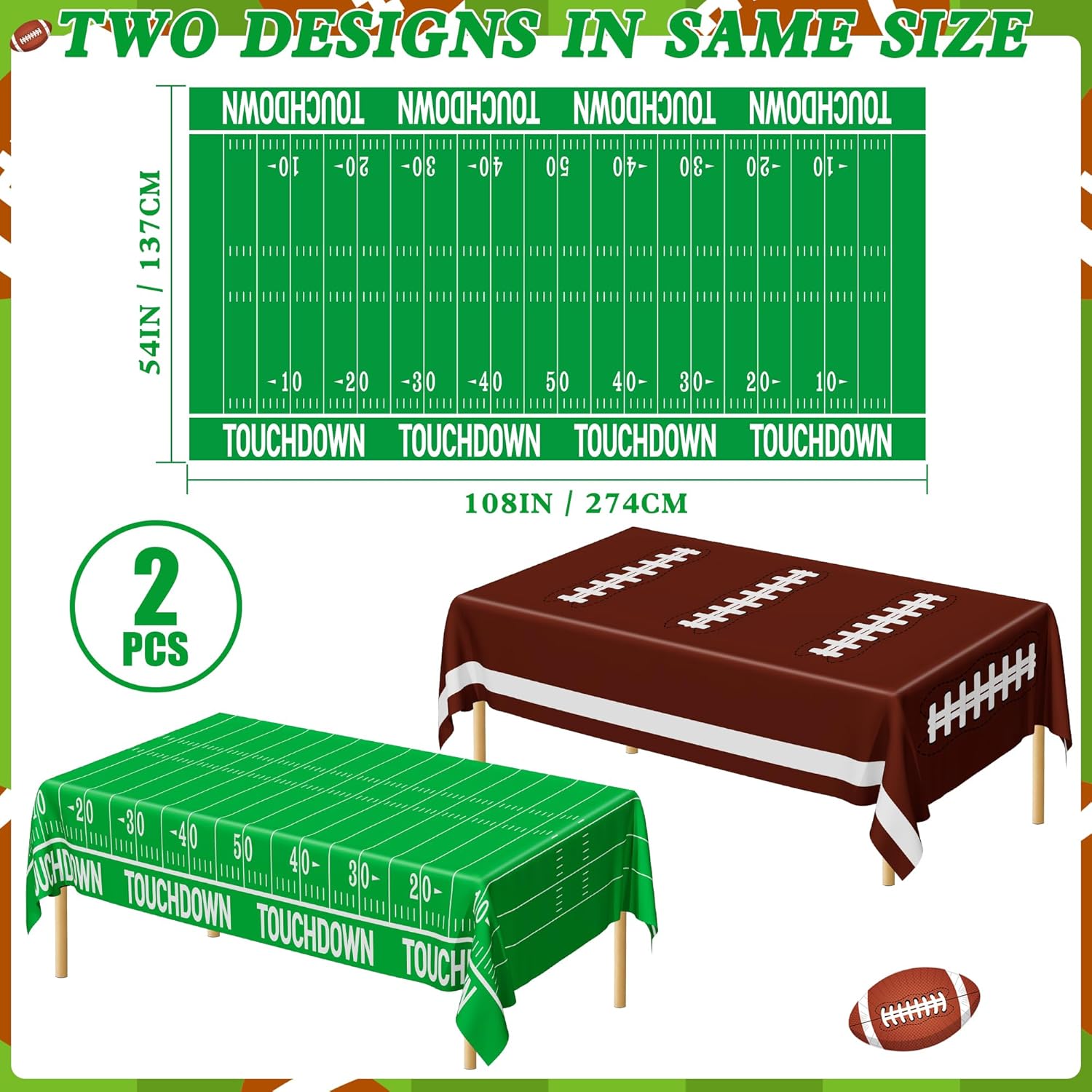 • Dimensions & Quantity: Each pack contains two football table cloths, each measuring 108 inches in length and 54 inches in width, providing ample coverage for standard-sized tables.