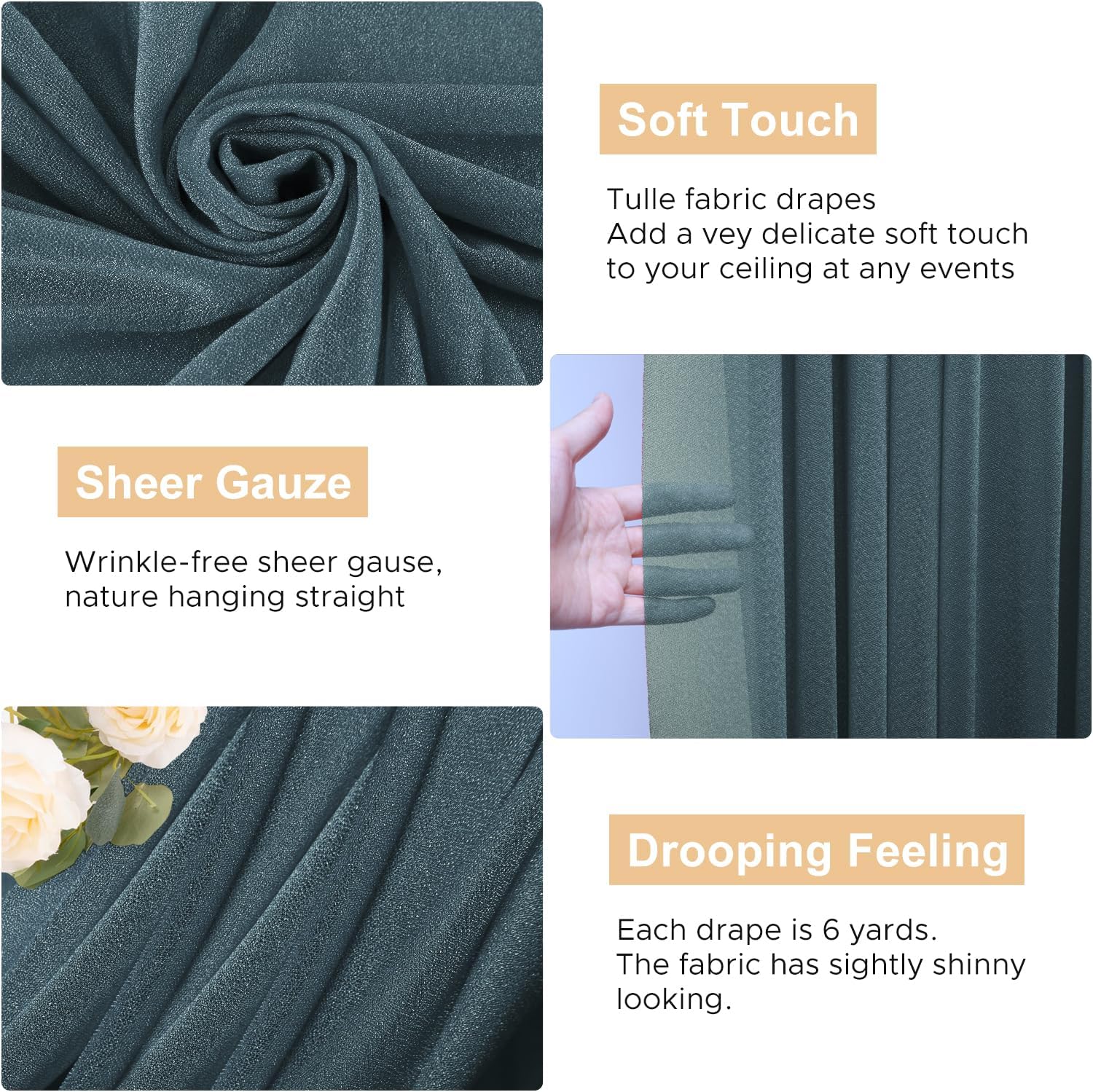 • Wedding Arch Draping Fabric: Package includes 1 panels grey blue wedding arch sheer drapes, each panel is 28.7 inches wide and 20 ft long, polyester sheer drapery backdrop is long enough to fit different size arch decor and create elegant atmosphere on your party