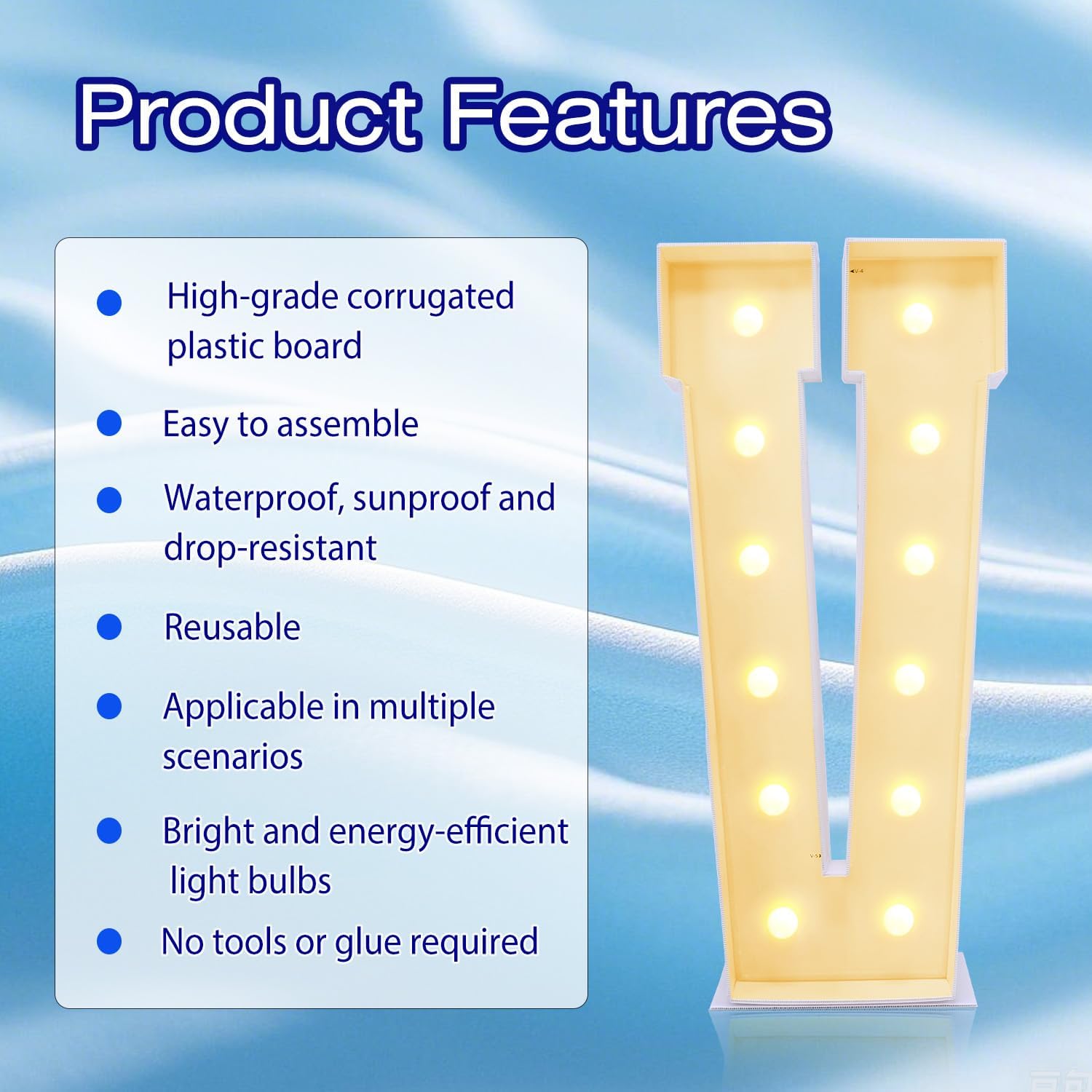 4FT Marquee Plastic Letters V - Light up Letters V Are Made from Corrugated Plastic Board - Quick Assembly Without Tools, Disassembled Components Can Be Used for Garage Sale Signs, Yard Sale Signs
