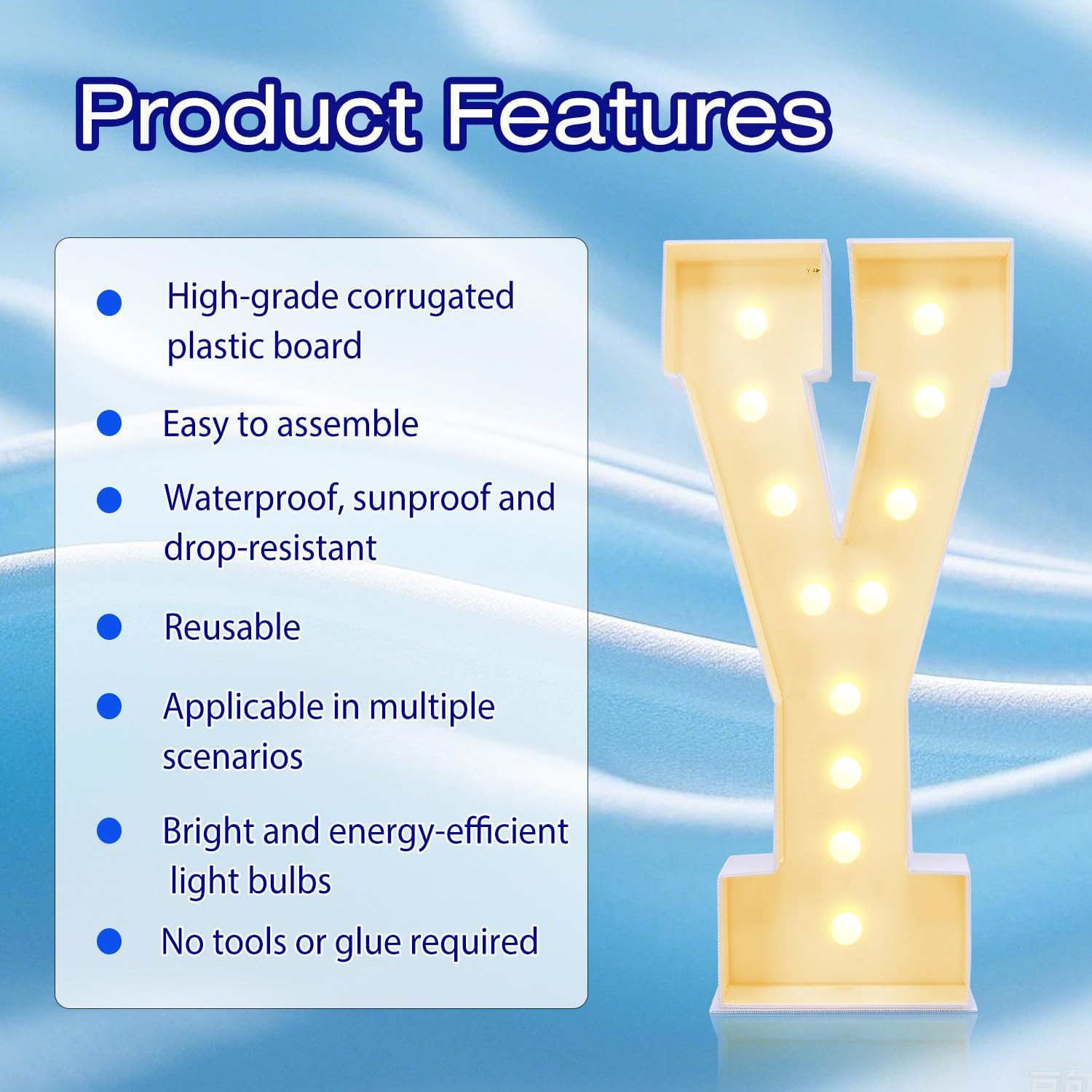 4FT Marquee Plastic Letters Y - Light up Letters Y Are Made from Corrugated Plastic Board - Quick Assembly Without Tools, Disassembled Components Can Be Used for Garage Sale Signs, Yard Sale Signs