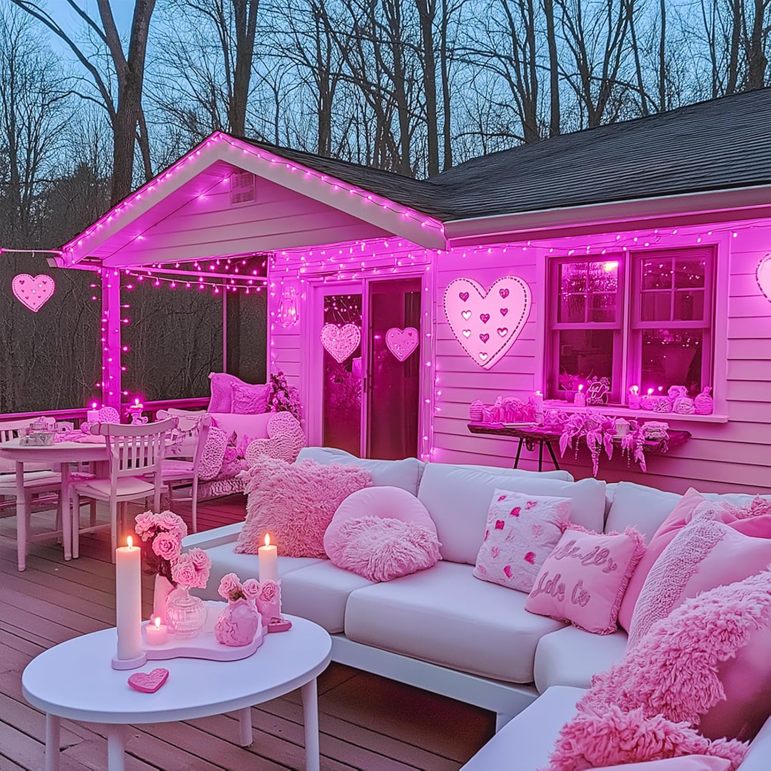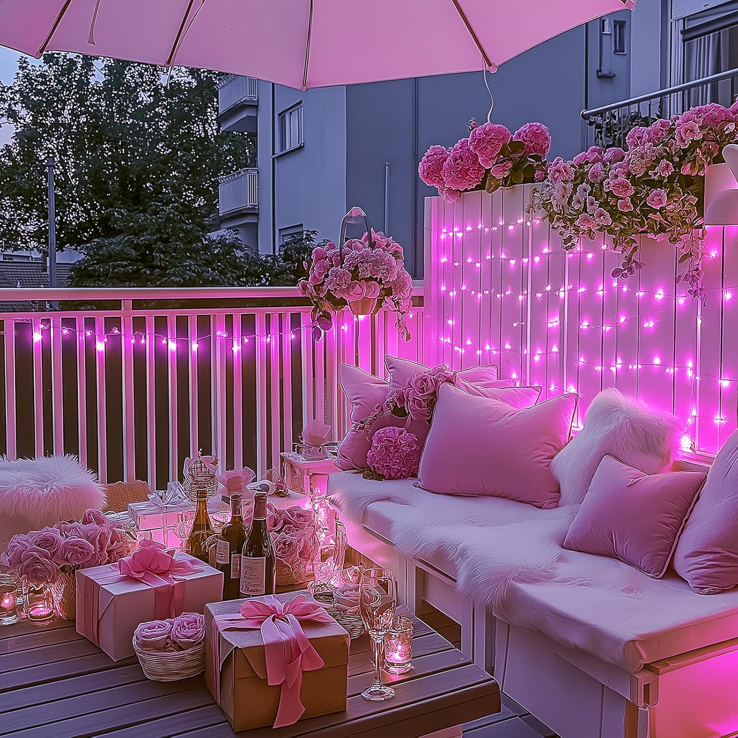 • 【Remote Control Pink String Lights for Outside】Our upgraded string lights come with a wireless remote control that offers 8 lighting modes, dimming options including 4 adjustable brightness levels, and timer functionality.