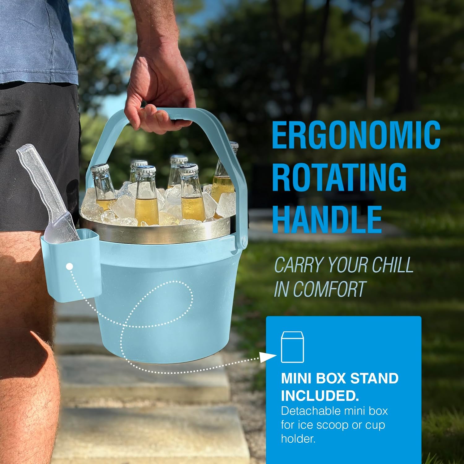 • Large Insulated Ice Bucket; Designed for performance and portability; Non-slip rubber base keeps it stable on any surface