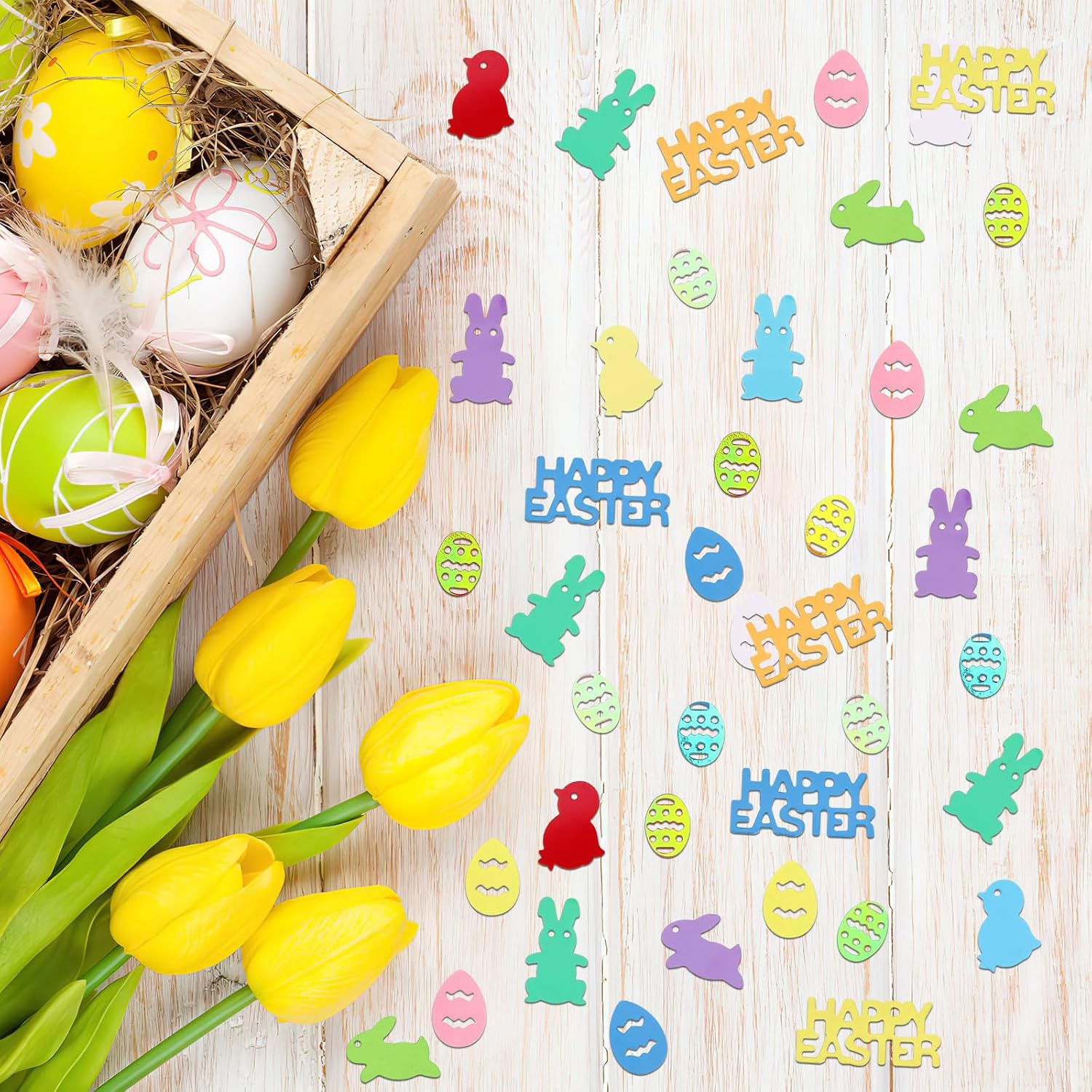 MARFOREVER Easter Confetti, Bunny Egg Rabbit Chicken Glitter Table Decorations Easter Party Scatter Metallic Foil Table Confetti Sprinkles for Happy Spring Party Supplies Decor