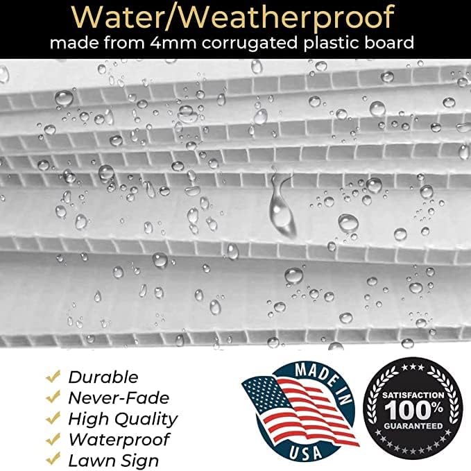 • Each yard sign comes in 4 sizes for your choice, 12''W x 18''L, 18''W x 24''L, 18''W x 27''L, or 24''W x 36''L. It is printed at high resolution and is weather-resistant with high-quality ink to stay strong in all conditions.