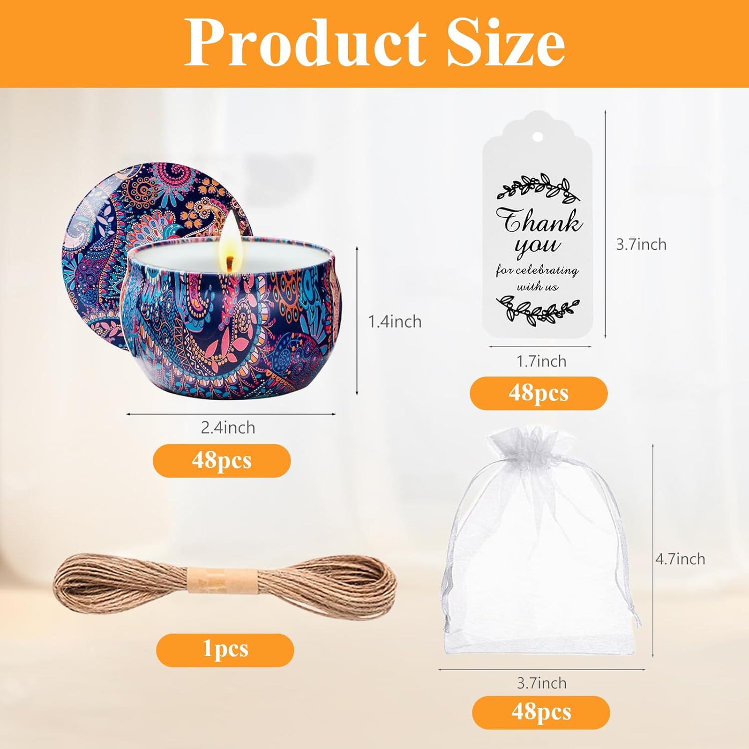 • Candle Sets for Women Gift: Our scented candles gift set includes 48 beautifully packaged candles, 48 charming thank-you tags, 48 classy white gift bags and a 18meter hemp rope. Perfect for adding a touch of elegance to any occasion, this set is ideal for baby showers, weddings, holidays, and special celebrations