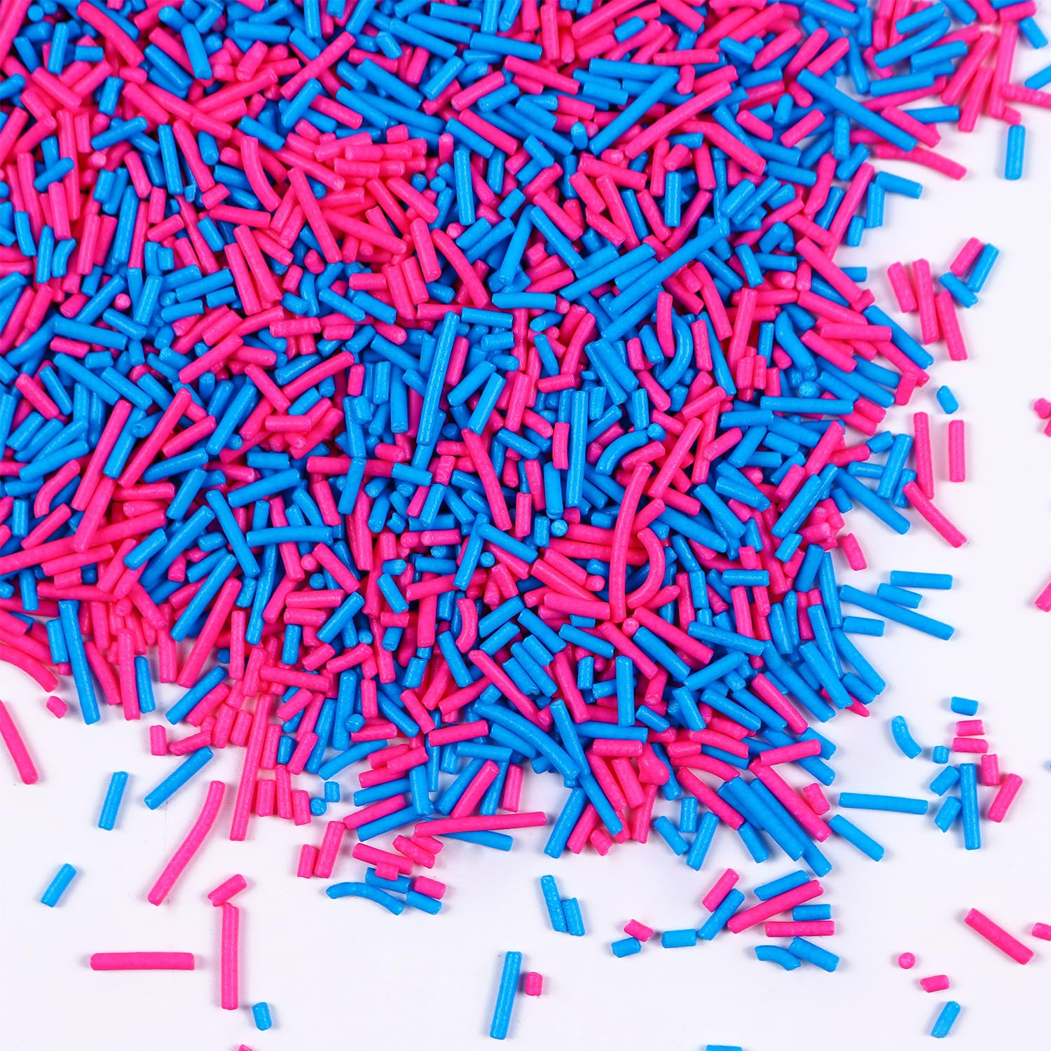 • Pink and Blue Jimmies Sprinkles: A bottle of pink sprinkles and blue sprinkles mix(120g/4.23oz), whether it's cakes, cupcakes, cookies, ice cream, cake pops, brownies, or any dessert you can dream of; our edible jimmies sprinkles are your go-to for that extra dash of cheer