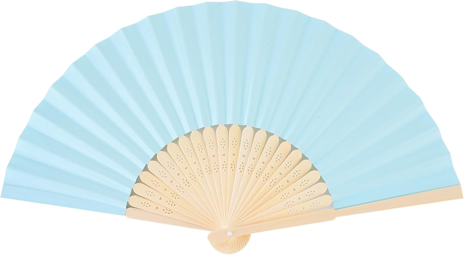 50pcs Blue Paper Hand Fan Bamboo Folding, Handheld Paper Folded for Wedding Party and Home Decoration