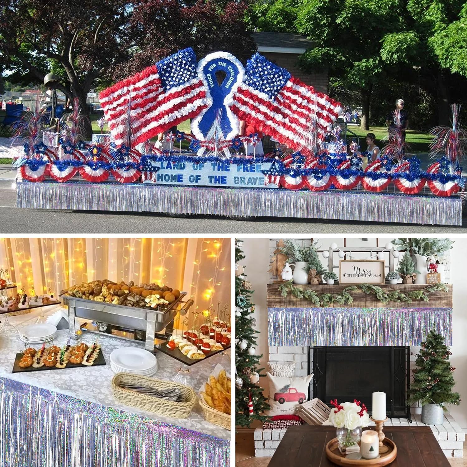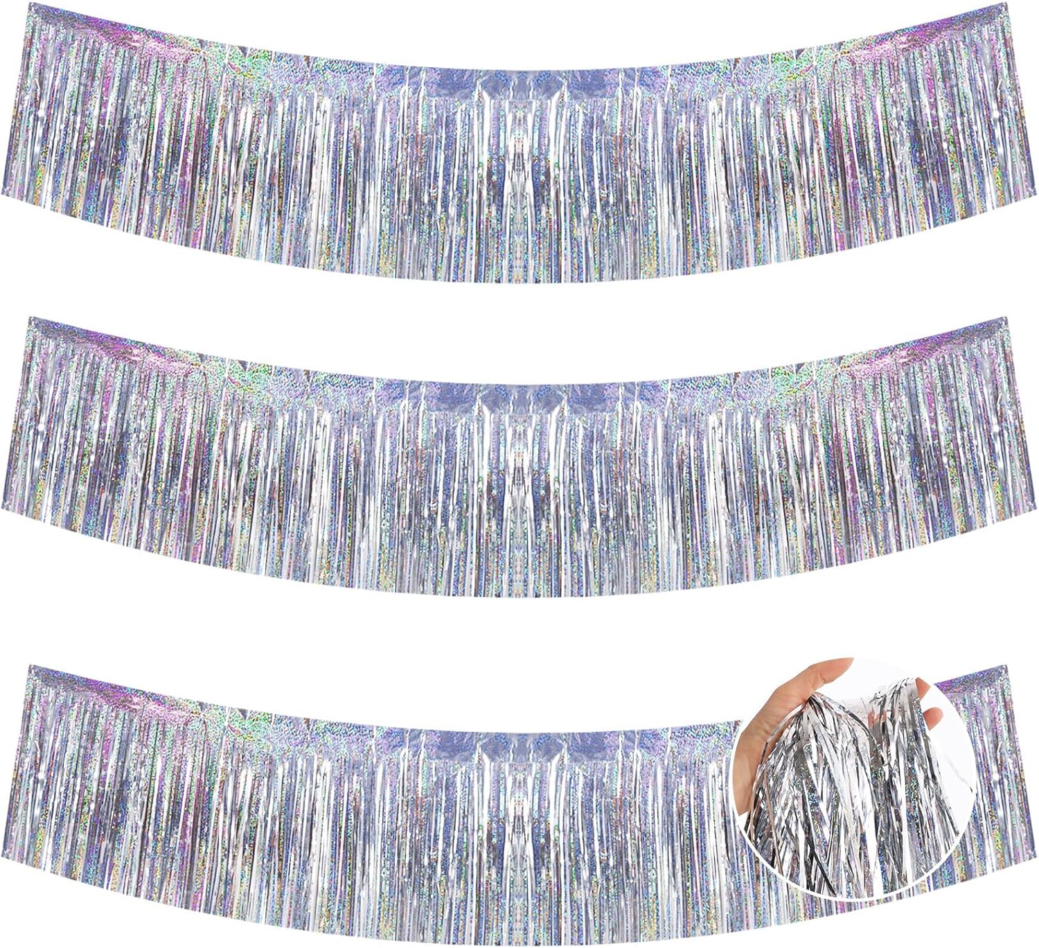 BEISHIDA 3 Packs 30 Feet Metallic Foil Fringe Garland Tinsel Streamers,Laser Silver Wall Hanging Tinsel Fringe Banners for Wedding Birthday Party Decoration Halloween Christmas New Year