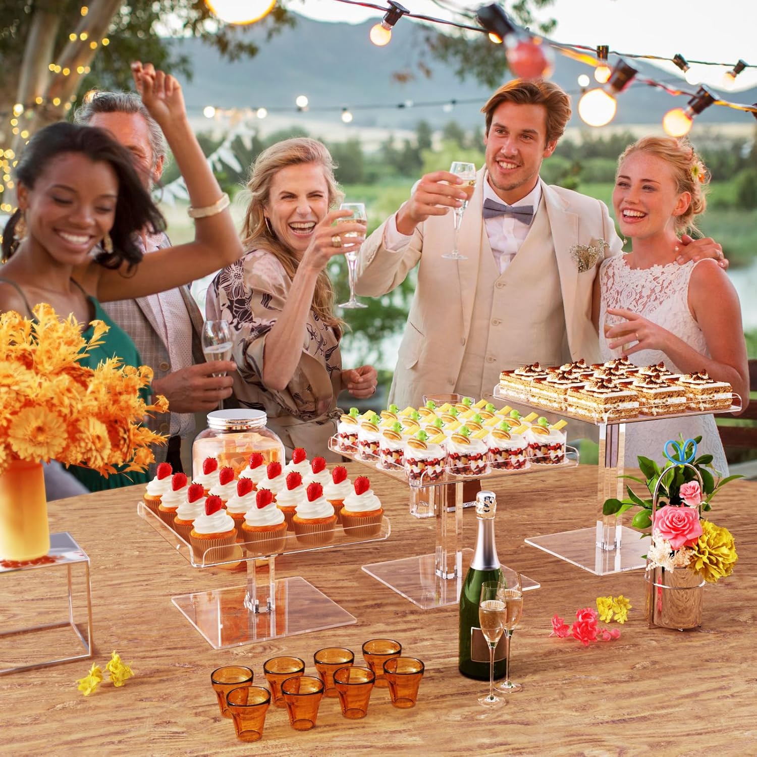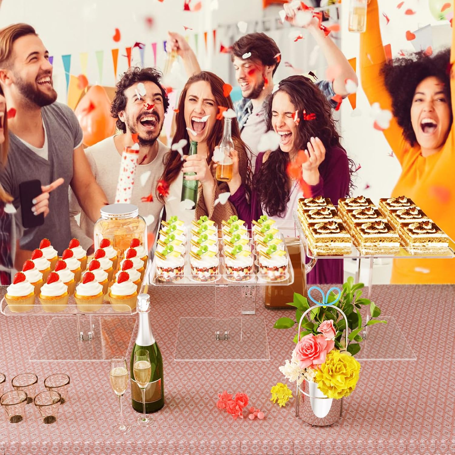 • Impressive Details: Featuring 0.12-inch thick acrylic, these cupcake stands are incredibly strong and durable. The smooth, scratch-resistant edges and open-ended design facilitate effortless cleaning. The acrylic dessert display's fence is seamlessly formed through a hot bending process, eliminating the need for adhesives and ensuring no chemical odors.